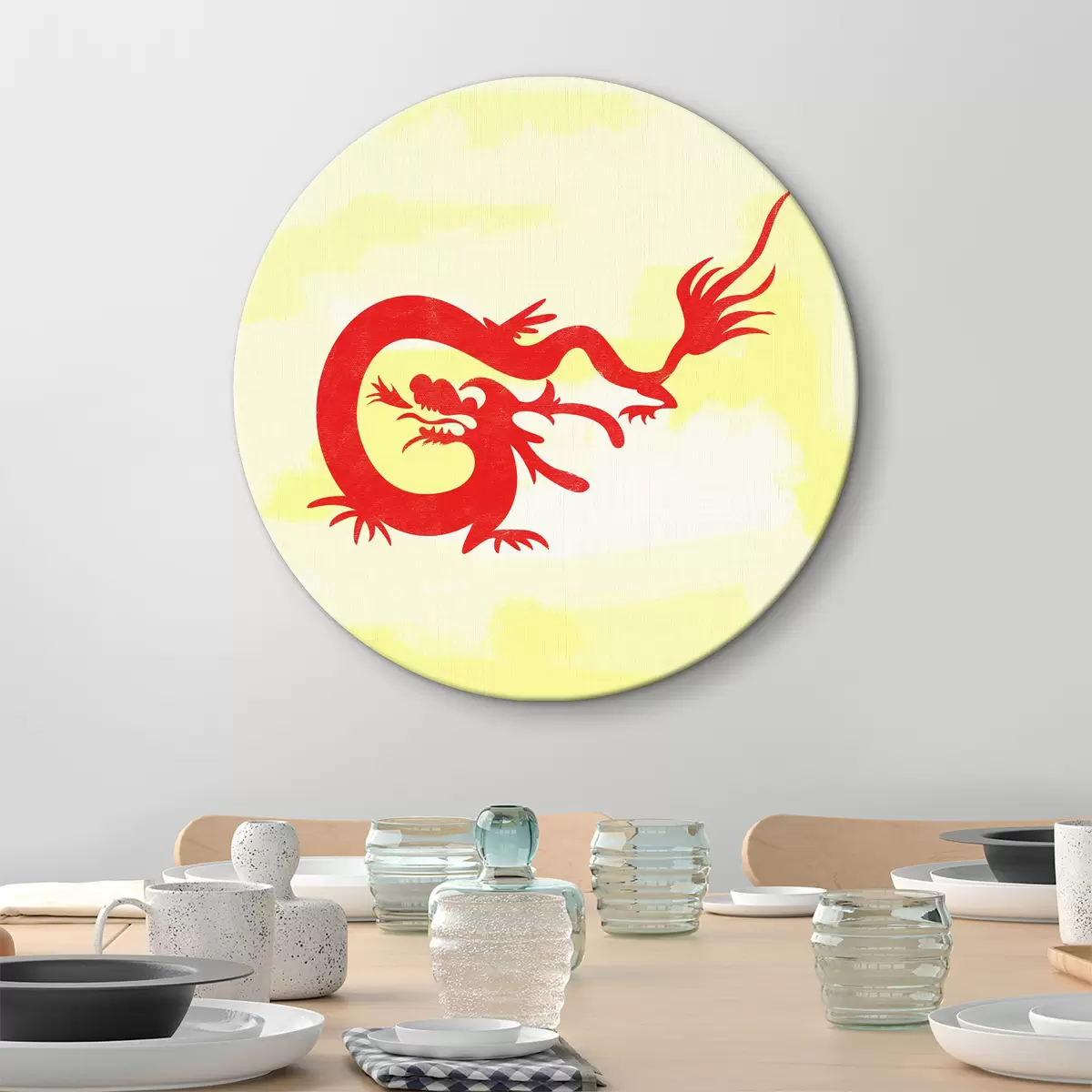 Ronde schilderijen Rode draak op gele achtergrond Nr r38338