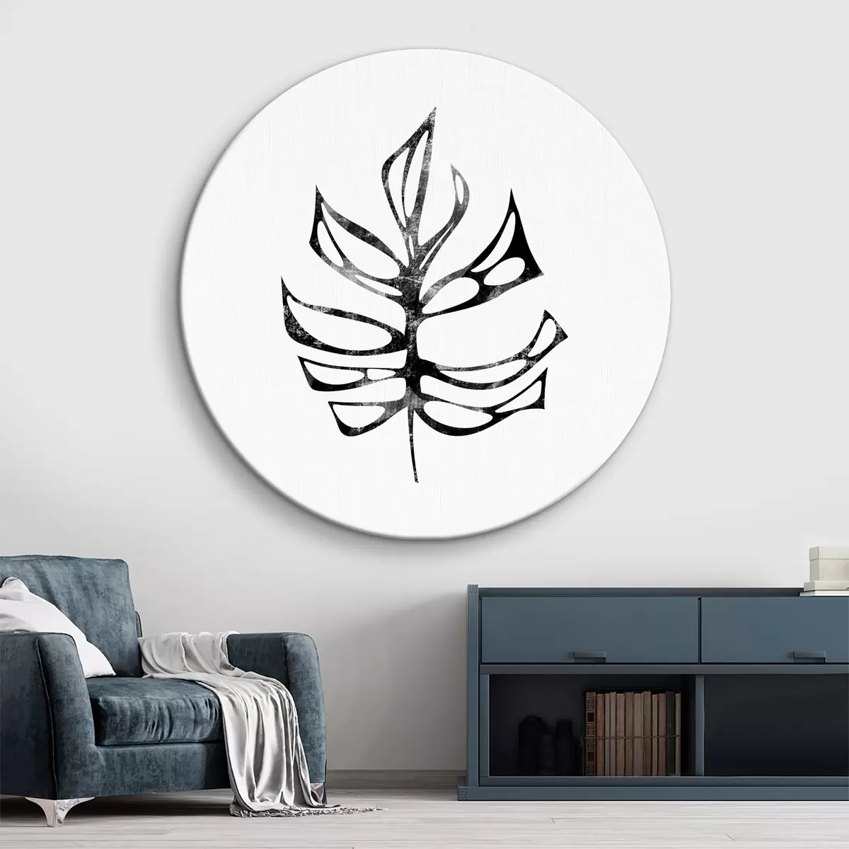 Ronde schilderijen Decoratief vel met insnijdingen en gaten, tropisch, getextureerde zwarte kleur, minimalisme, bloemen r38342