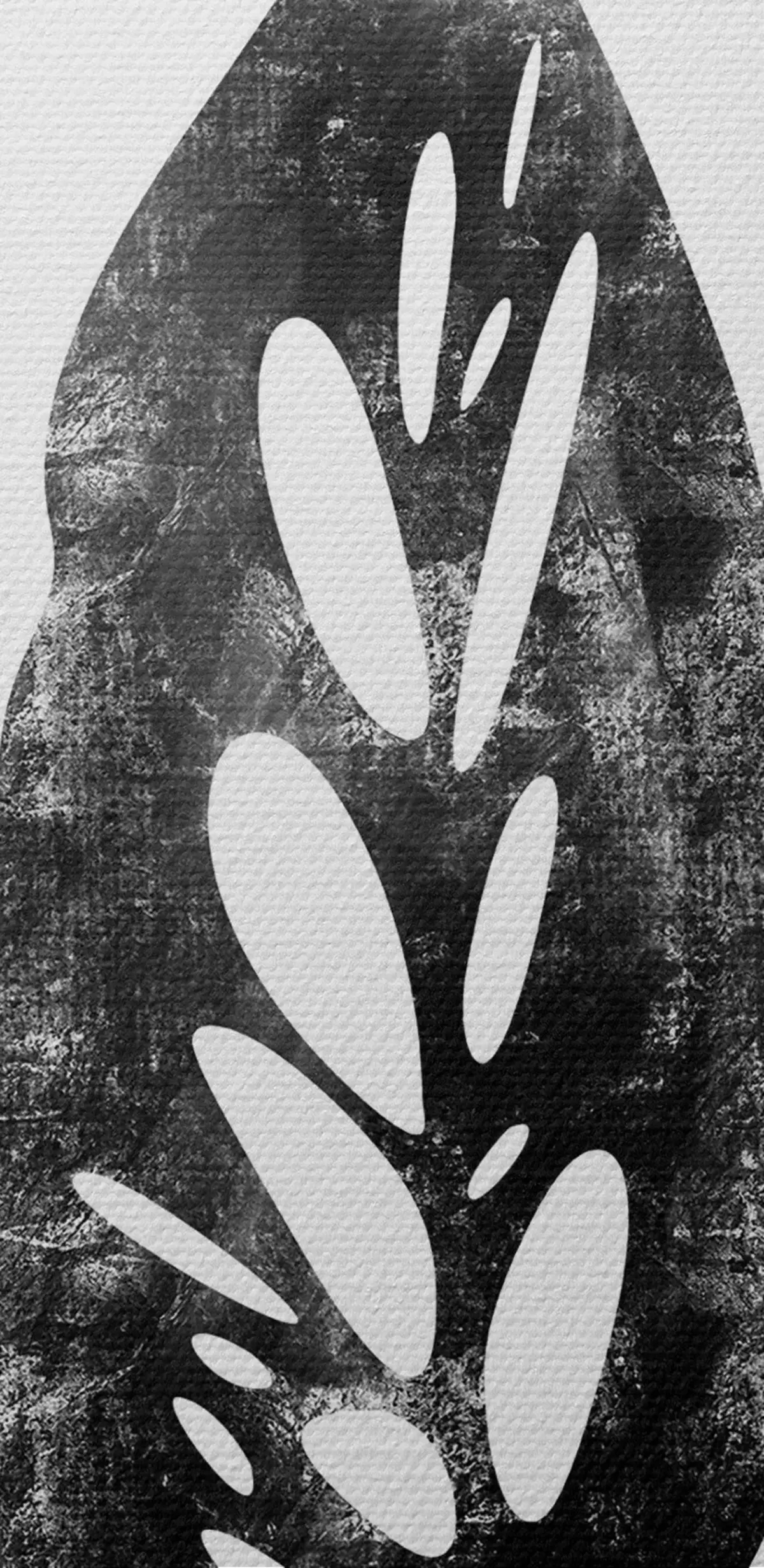 Ronde schilderijen Blad in zwart-wit Nr r38343