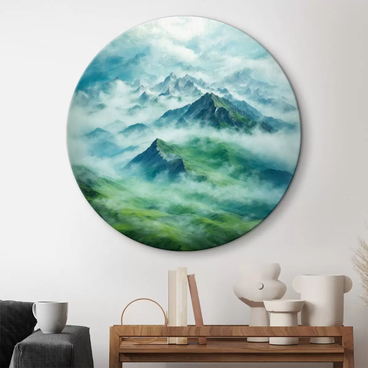 Ronde schilderijen Bergketen met wolken Nr r38359