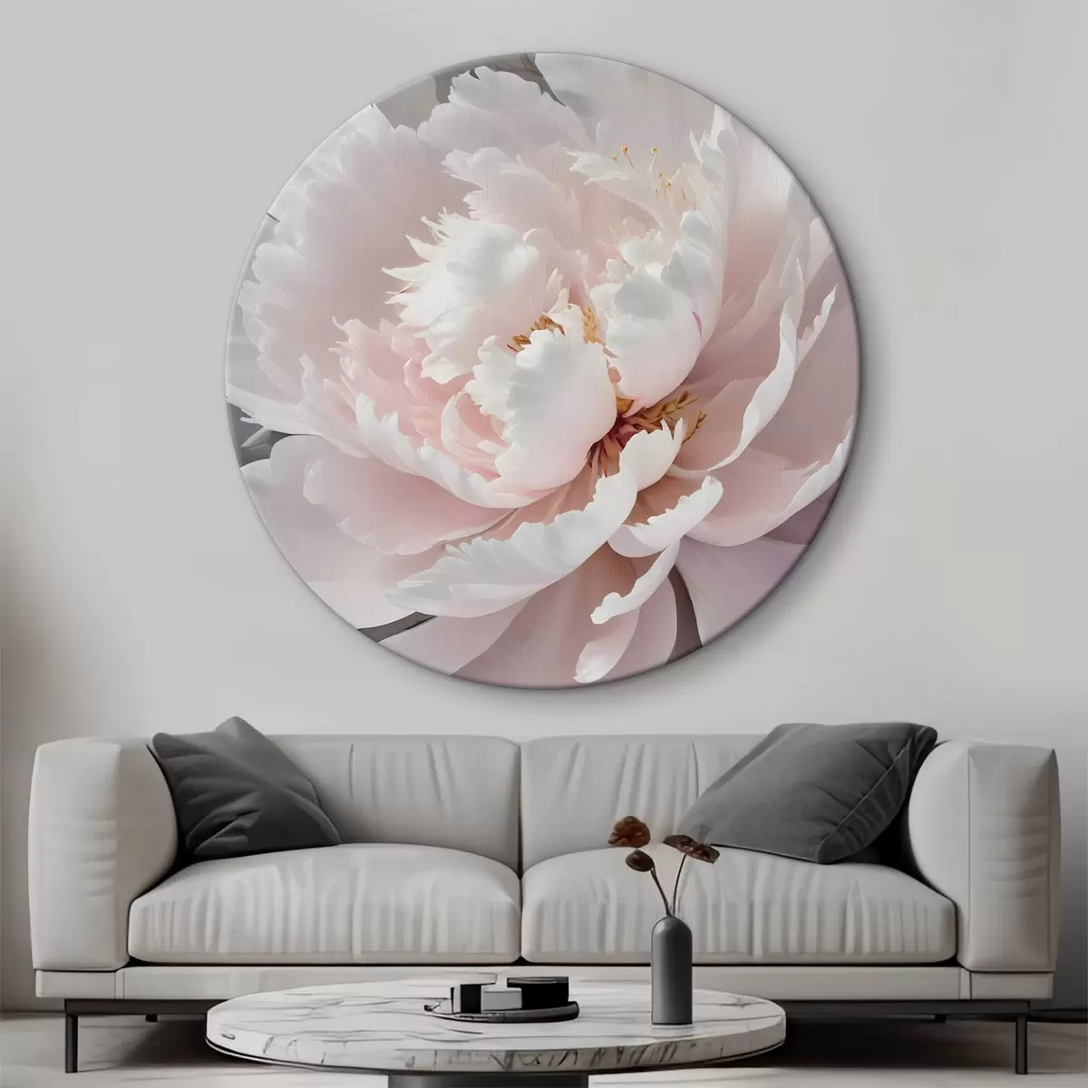 Ronde schilderijen Een close-up van grote, delicate roze pioenrozen tegen een donkere achtergrond Nr r38363