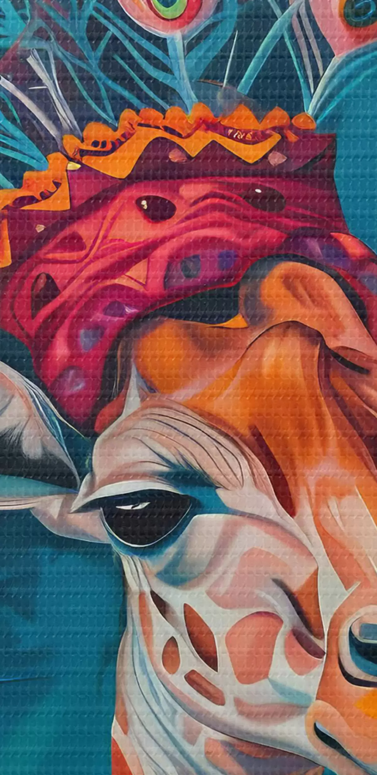 Ronde schilderijen Giraffe met hoed Nr r38377