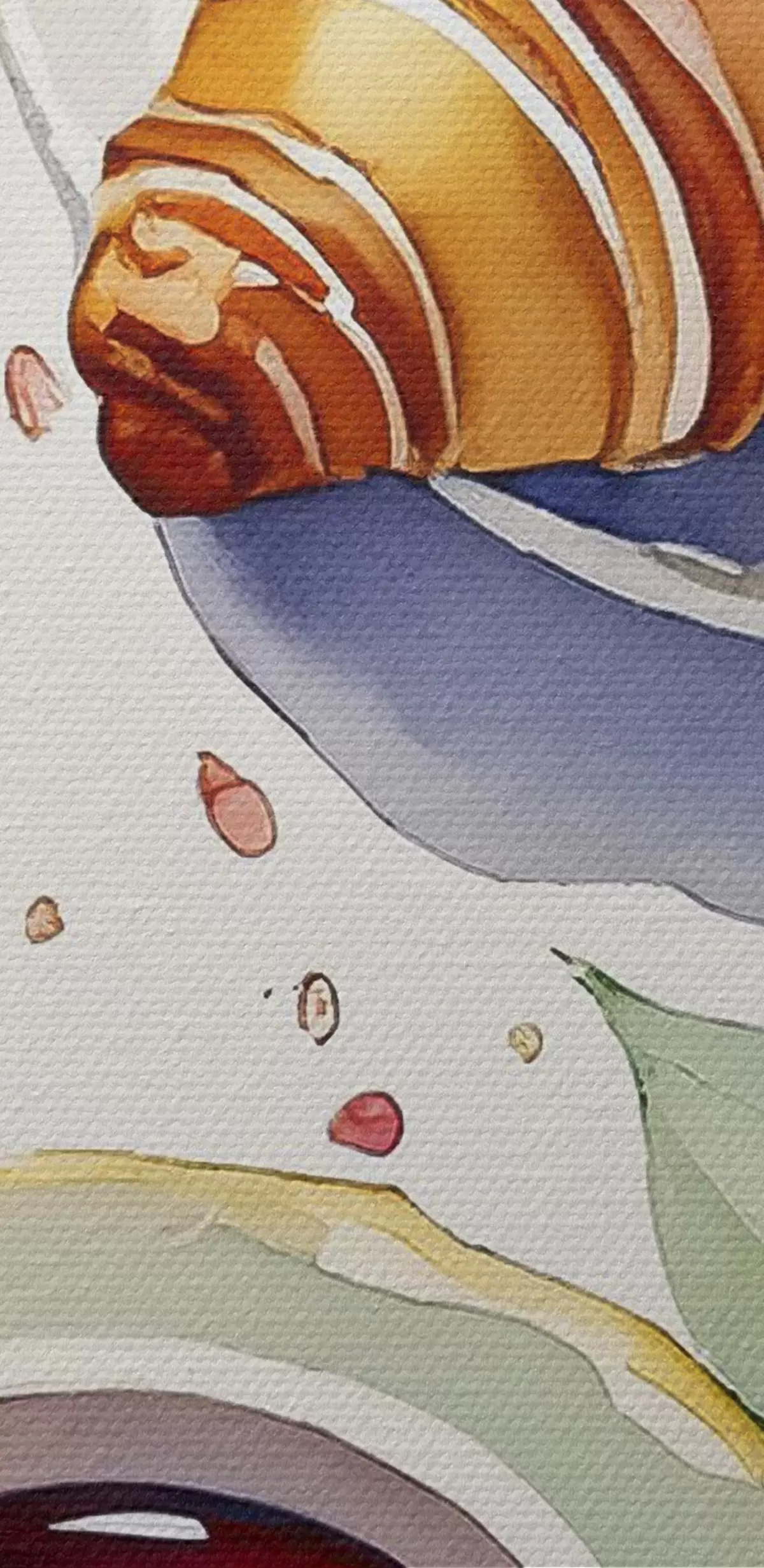 Ronde schilderijen Croissant aquarel, kopje thee, ontbijt, citroenen, rustieke stijl Nr r38389
