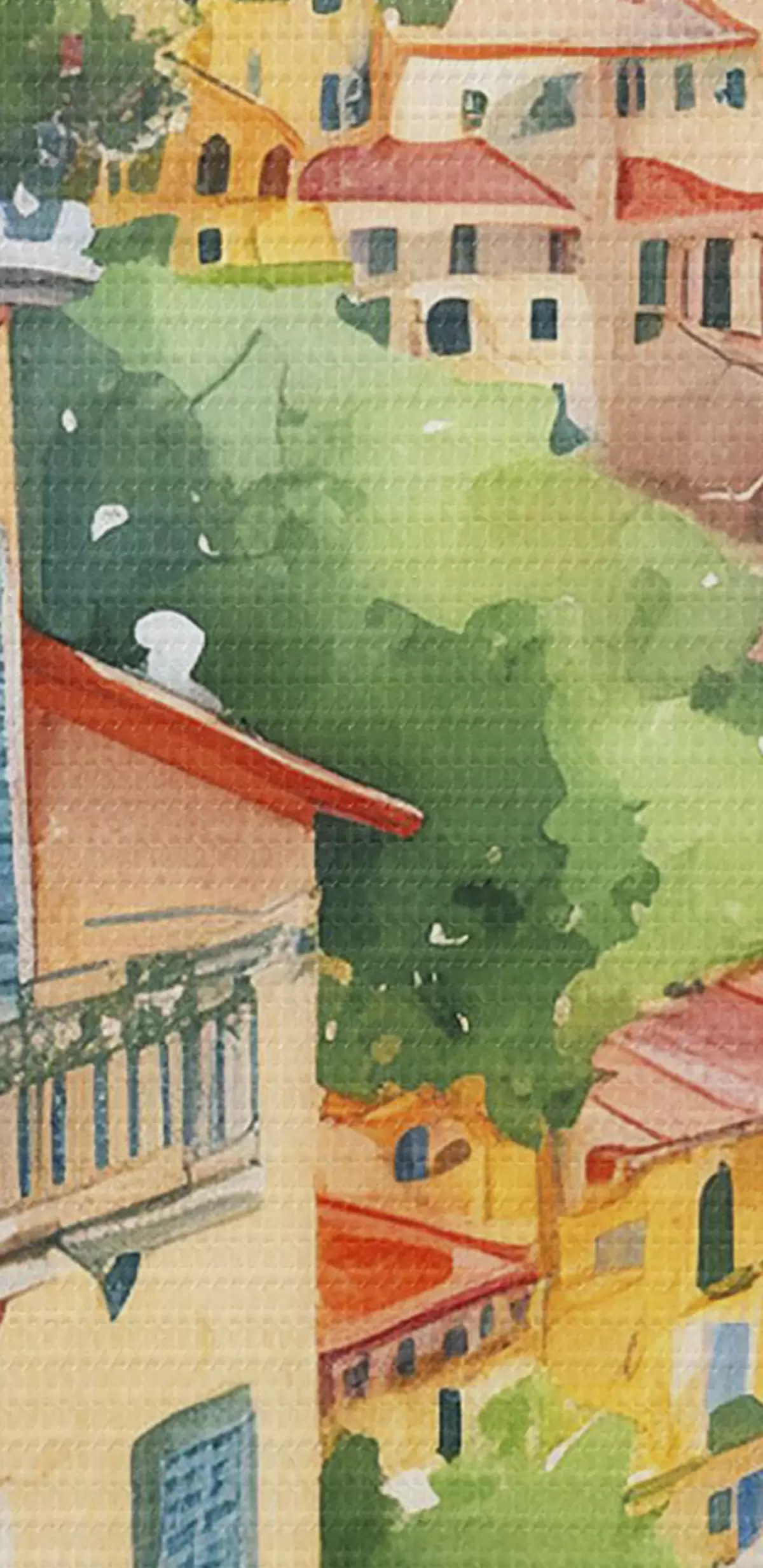 Ronde schilderijen Italiaanse stadsarchitectuur, Amalfi Zeekust, zomer, aquarel, citroenboom r38393