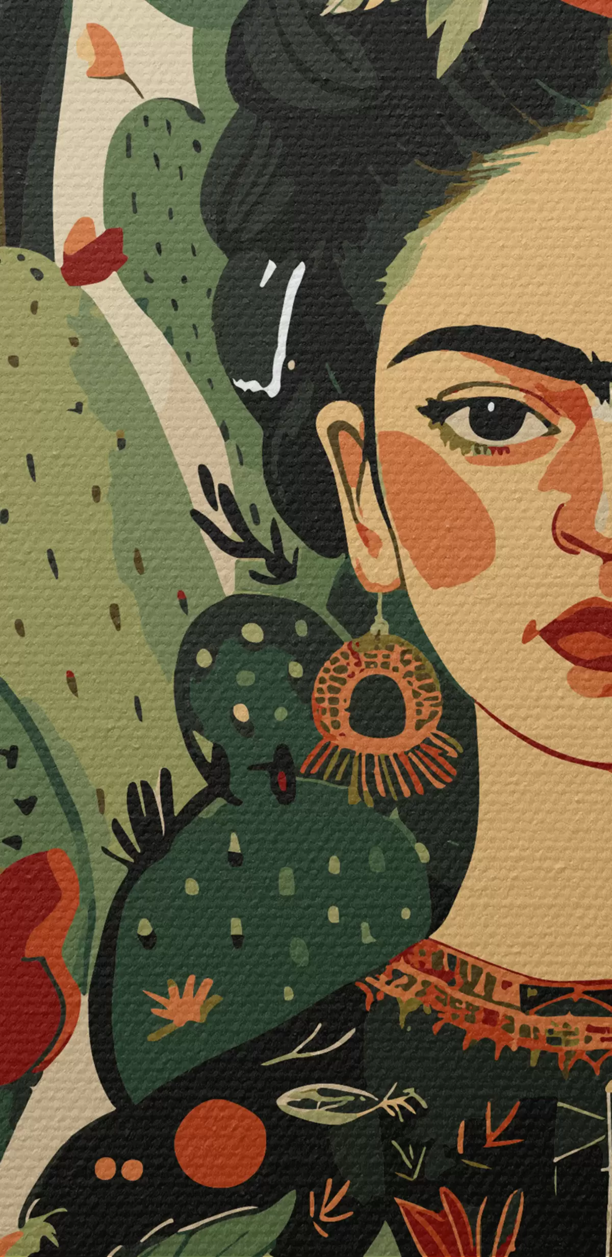 Ronde schilderijen Frida op de achtergrond van een cactuspatroon Nr r38415