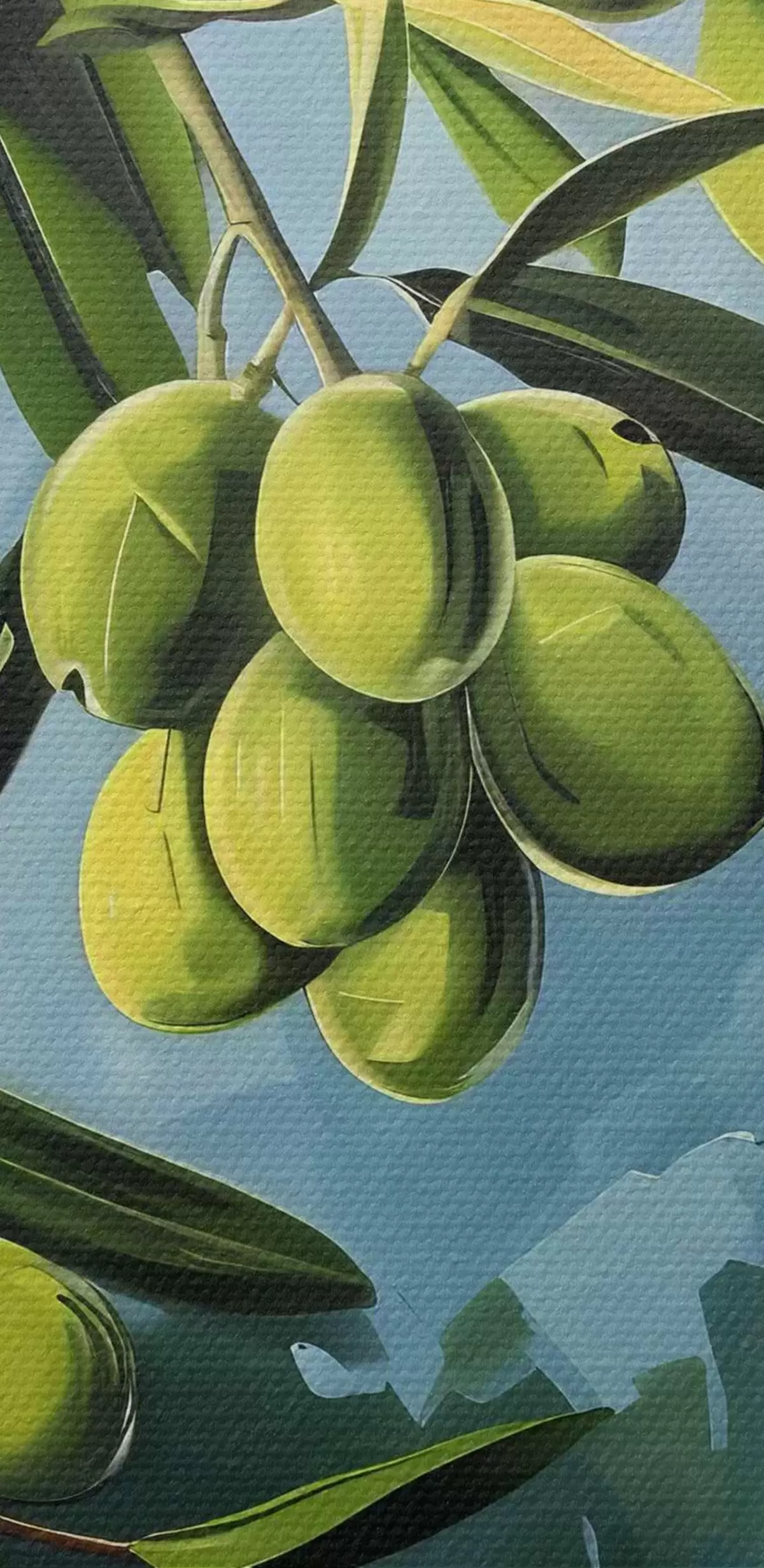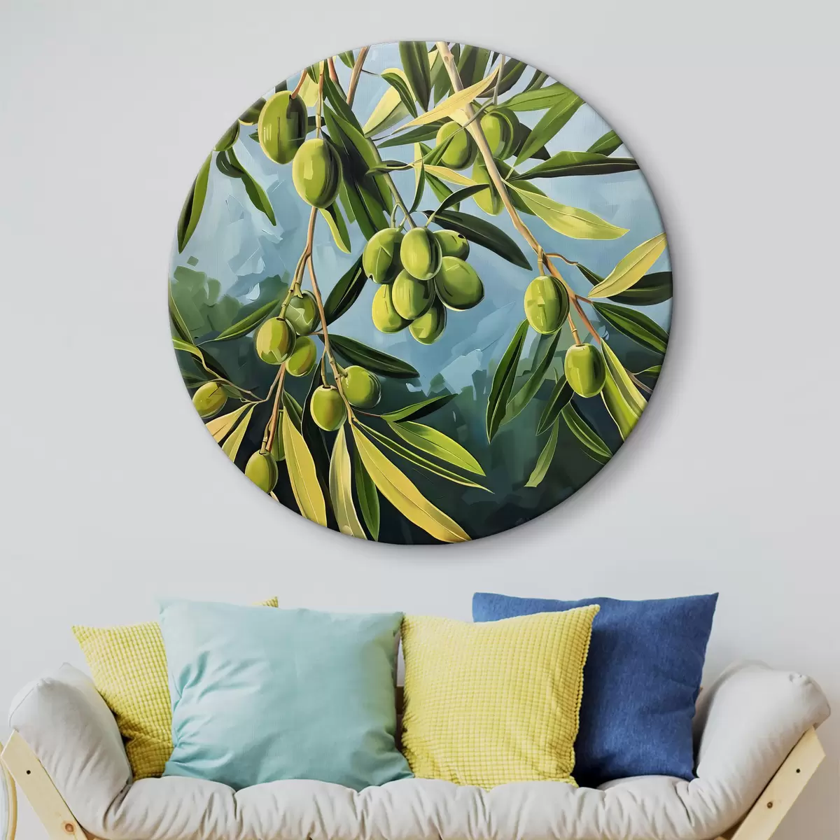 Ronde schilderijen Groen fruit aan de boom Nr r38418