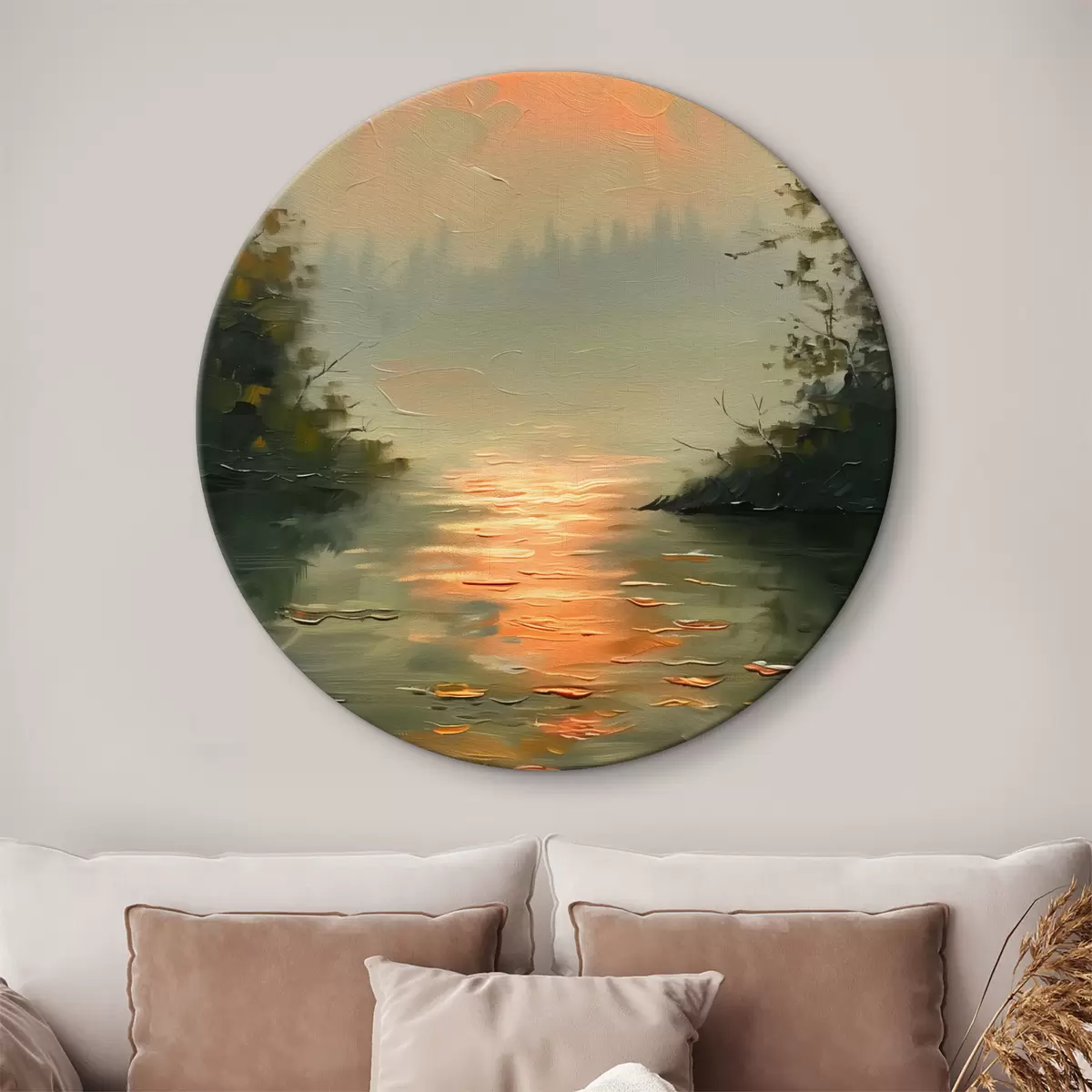 Ronde schilderijen Lake landschap zonsondergang gedrukte textuur r38423