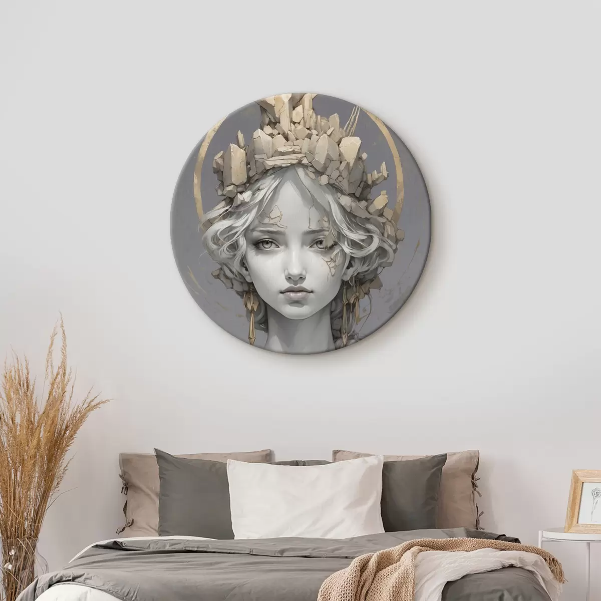 Ronde schilderijen Vrouw met een kroon van stenen r38432