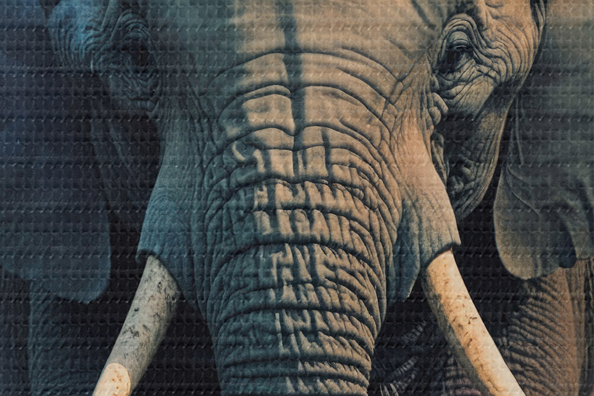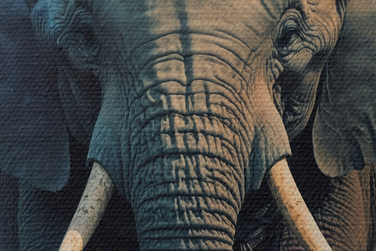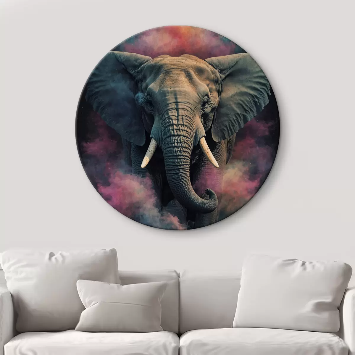 Ronde schilderijen Olifant op zwarte achtergrond Nr r38436