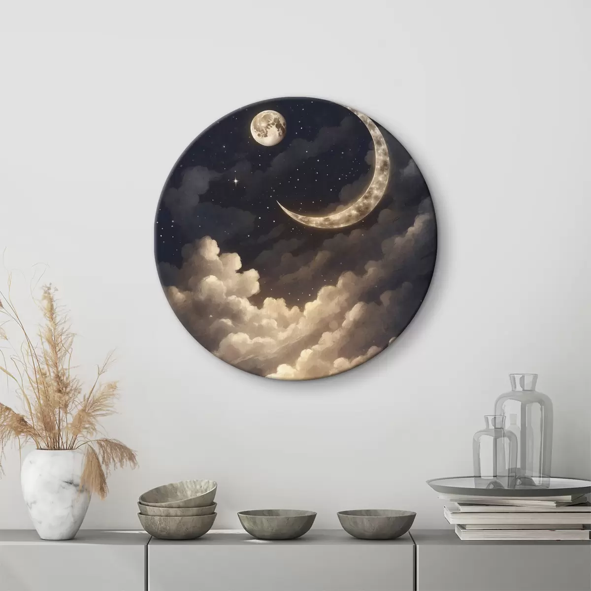 Ronde schilderijen Maan en wolken aan de hemel Nr r38437
