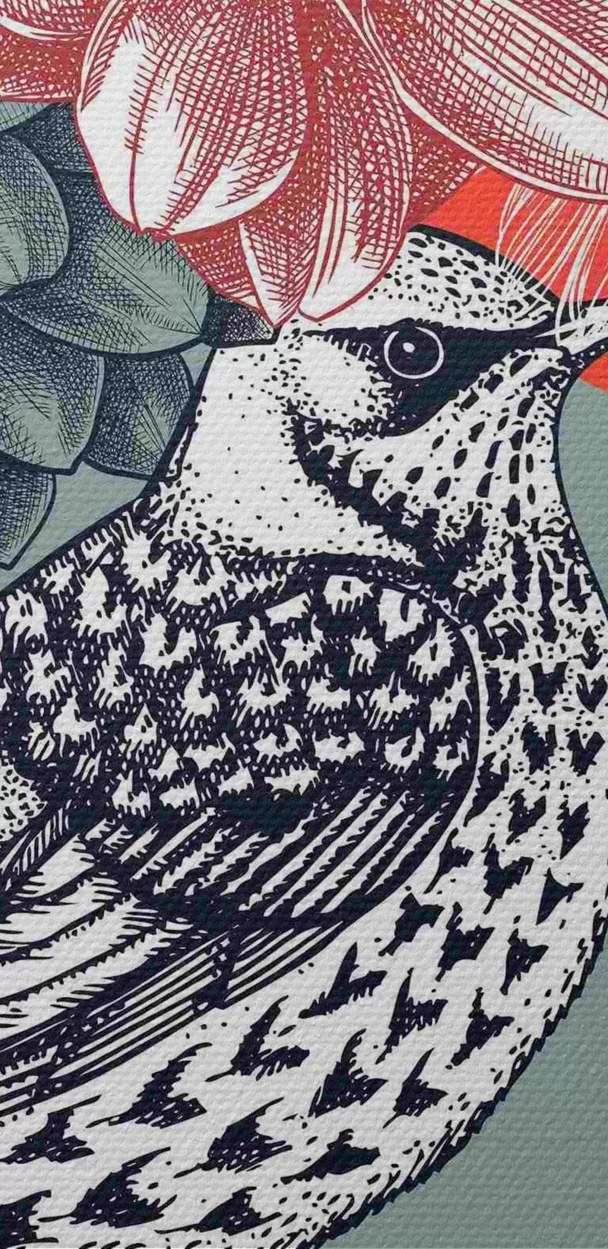 Ronde schilderijen Een vogel met bloemen op zijn hoofd Nr r38442
