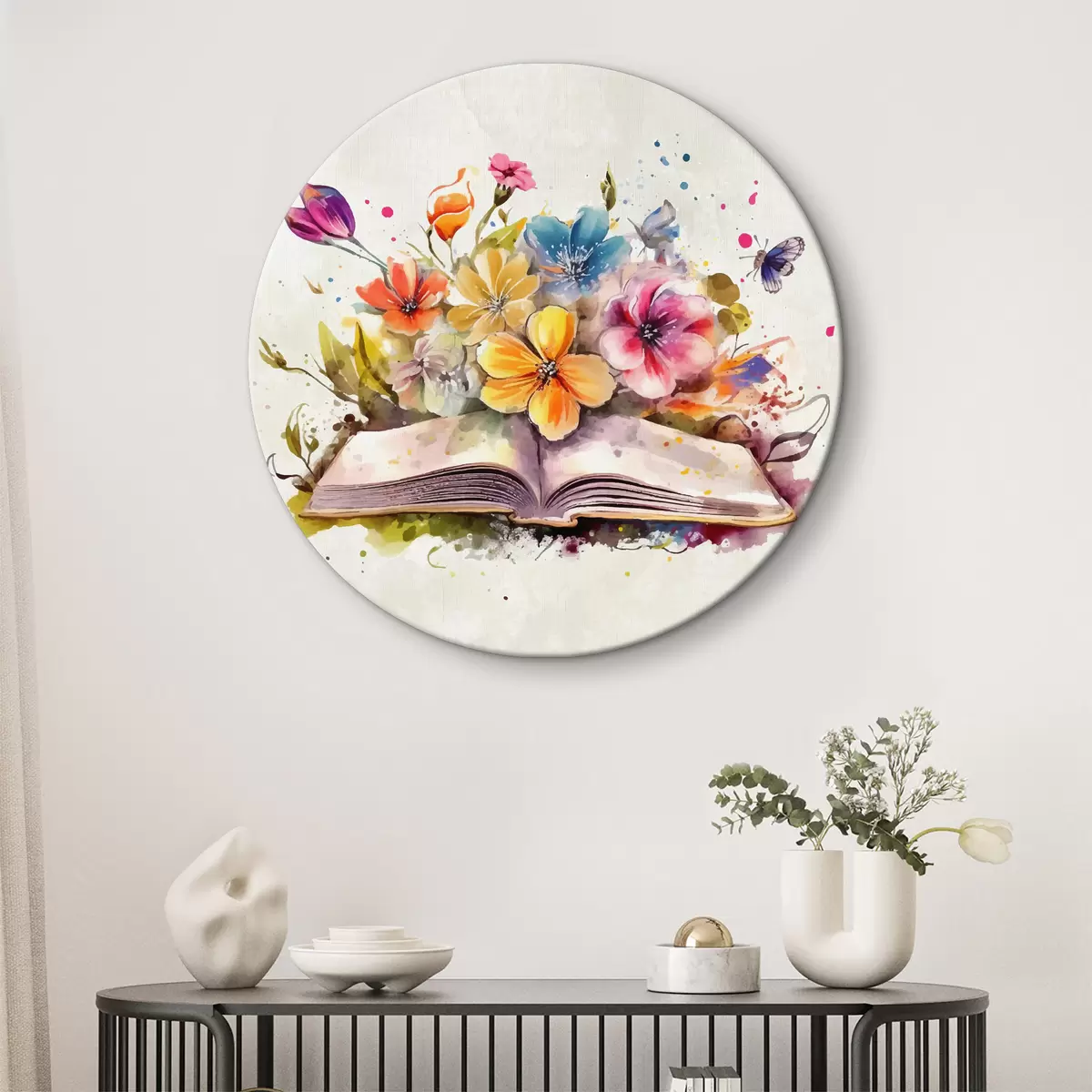 Ronde schilderijen open boek met bloemen, aquarelverf Nr r38446