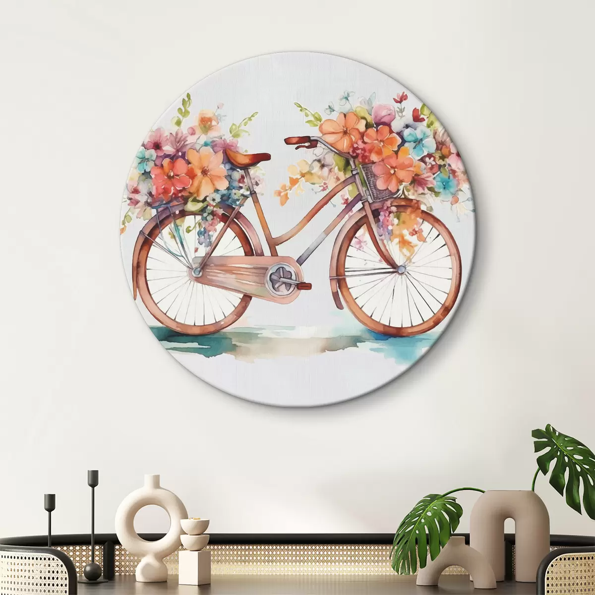 Ronde schilderijen fiets met felle kleuren, aquarelverf Nr r38447