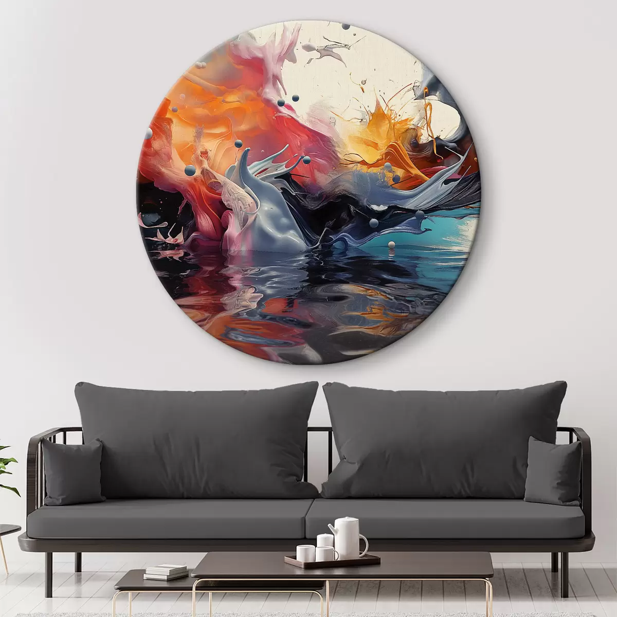 Ronde schilderijen Kleurrijke verf spettert water r38456