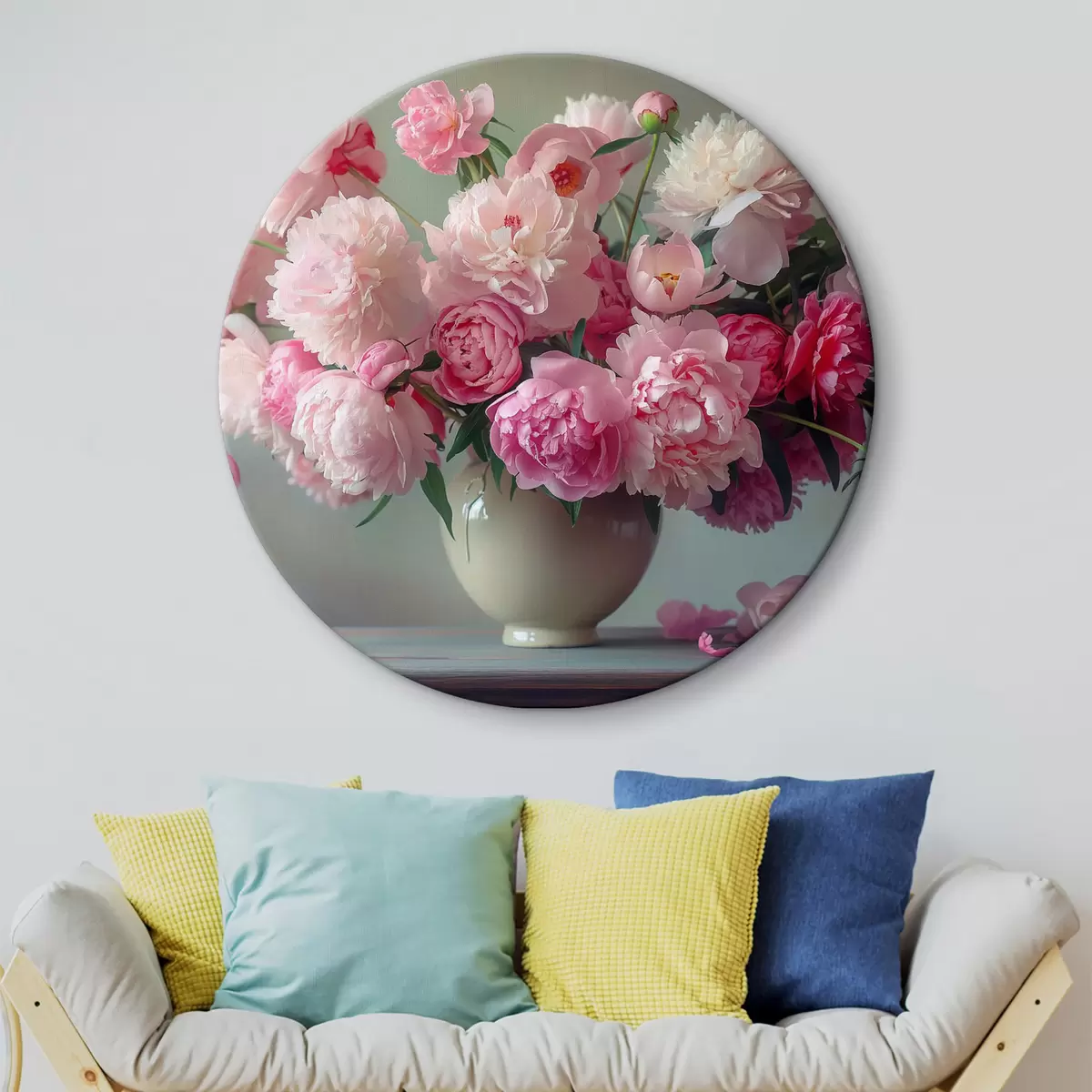 Ronde schilderijen Delicaat boeket pioenrozen Nr r38458