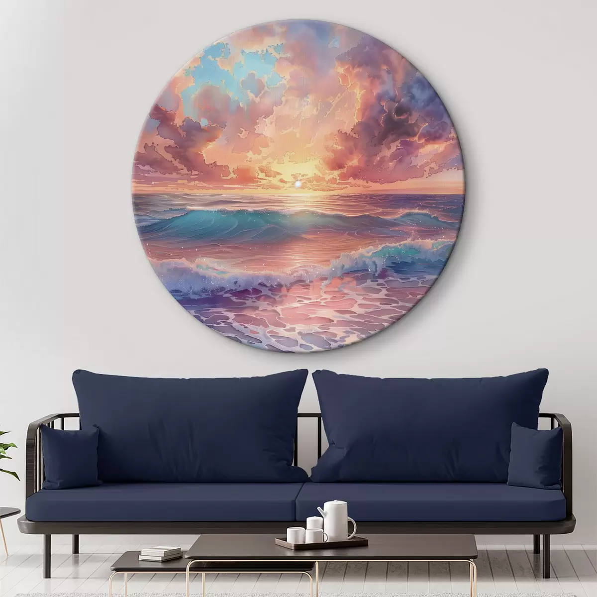 Ronde schilderijen Roze zonsondergang op de zee Nr r38475