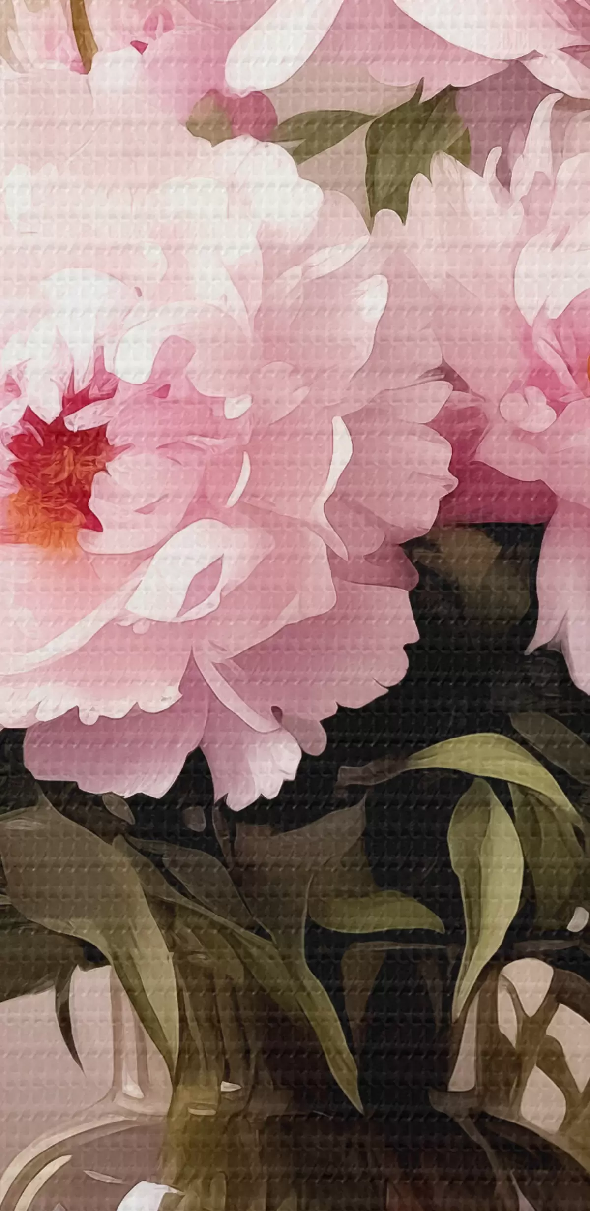 Ronde schilderijen Roze pioenrozen in een glazen vaas op een zwarte achtergrond, imitatie olieverfschilderij, bloemen Nr r38482