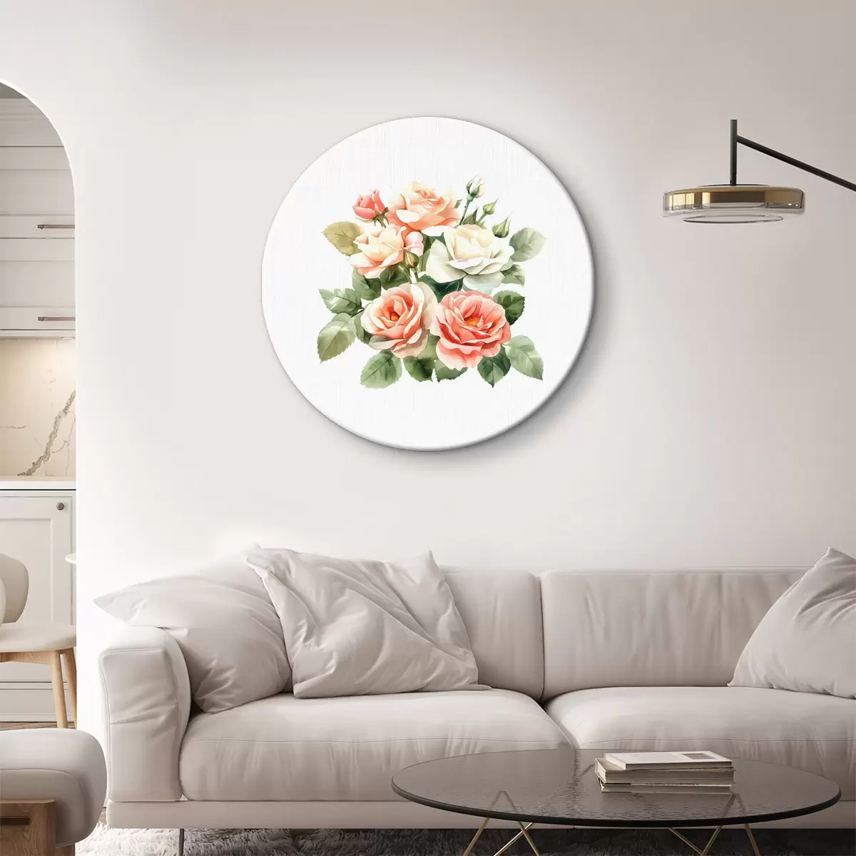 Ronde schilderijen Boeket bloemen met bladeren Nr r38483