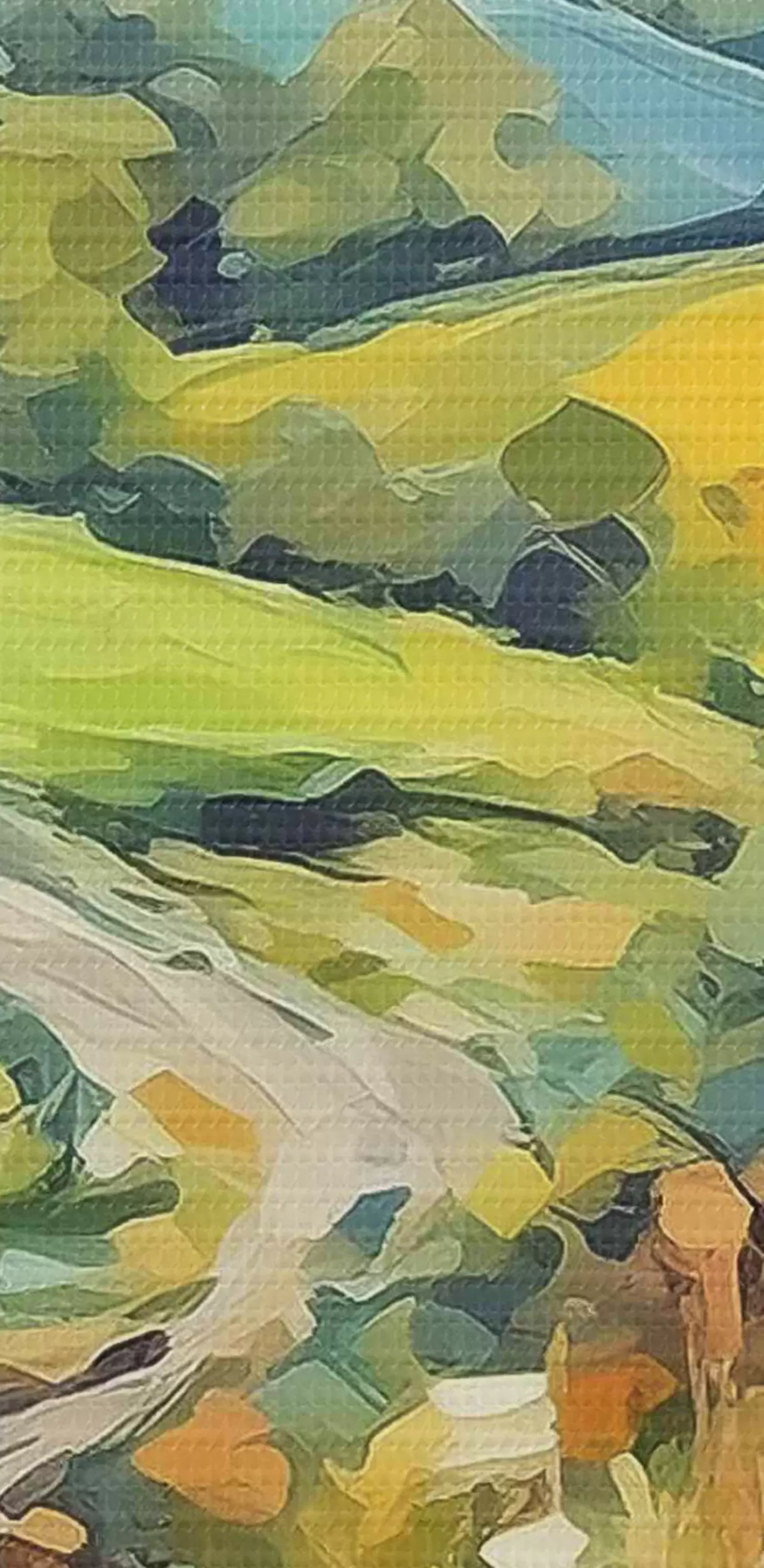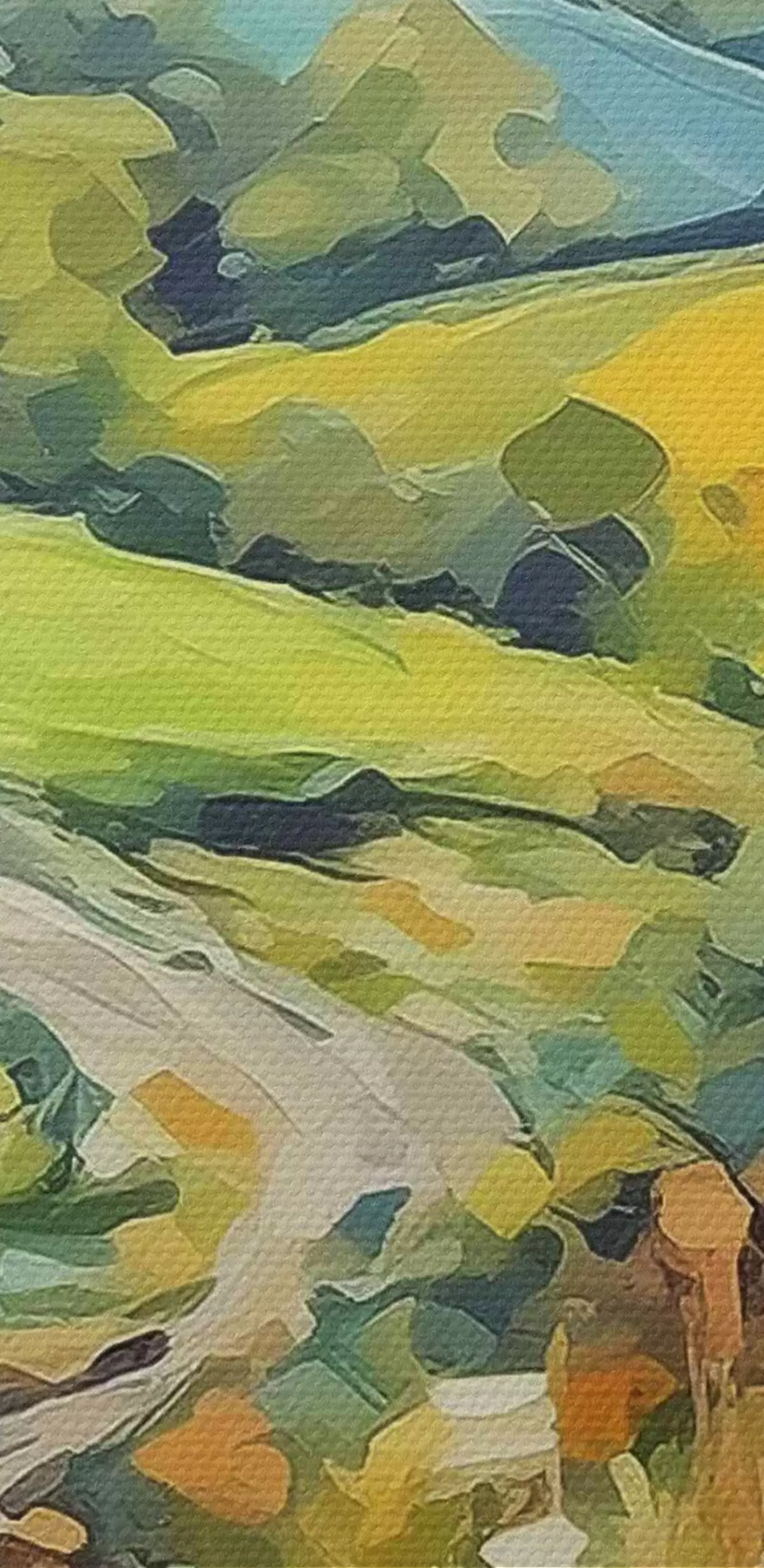 Het schilderij kan direct na ontvangst worden opgehangen. Het schilderij wordt opgespannen op een 2 cm breed houten spieraam.