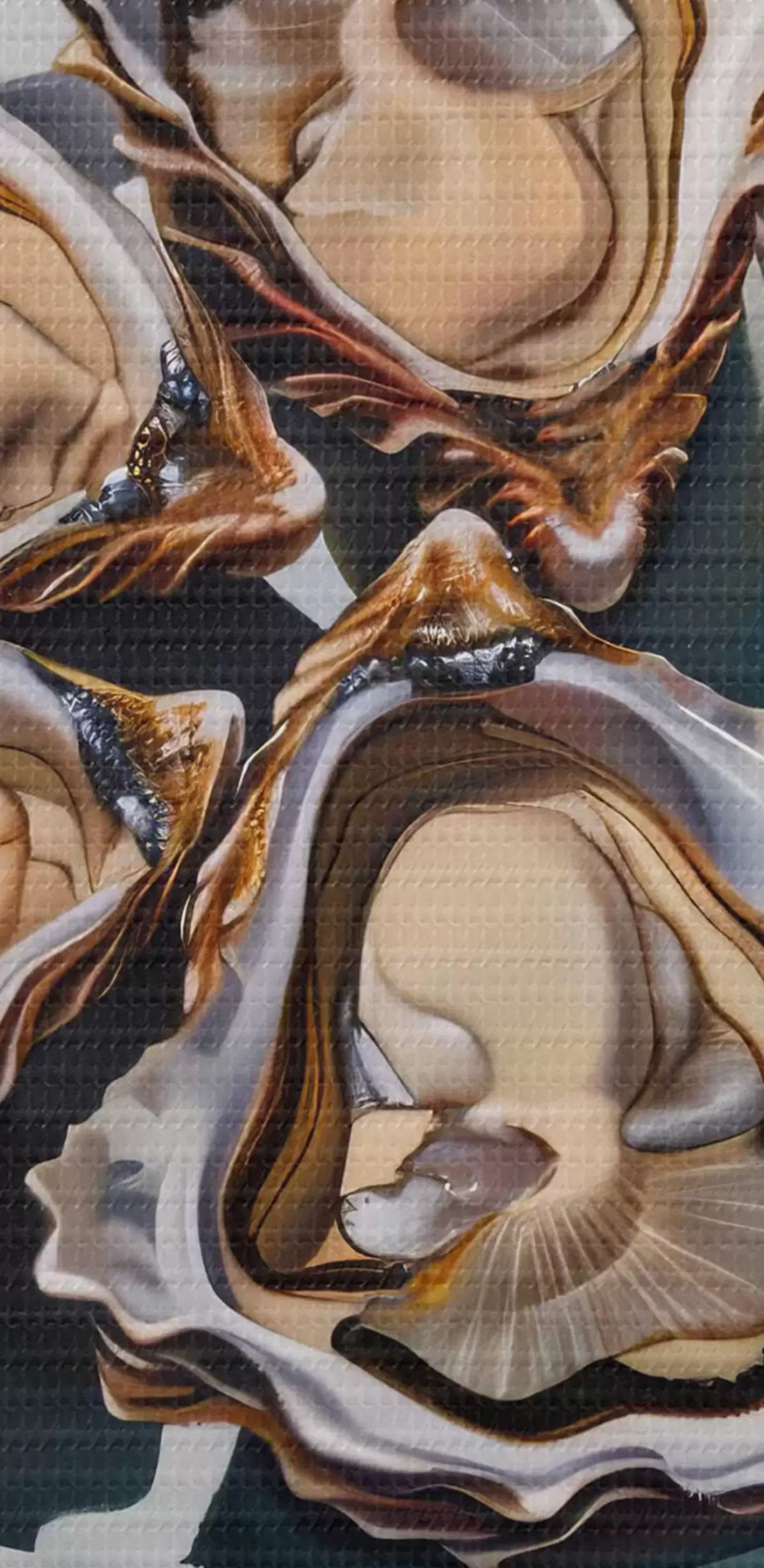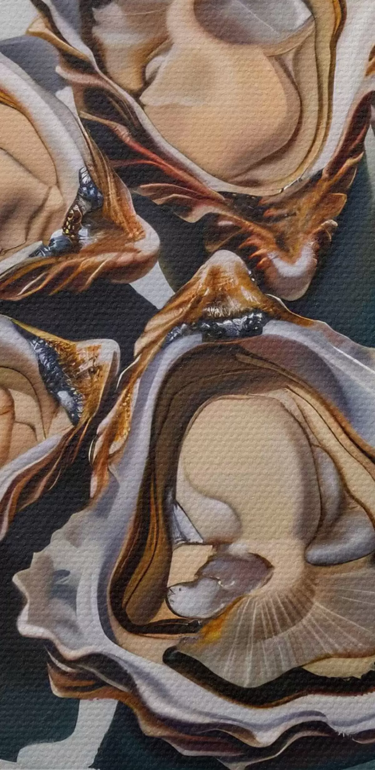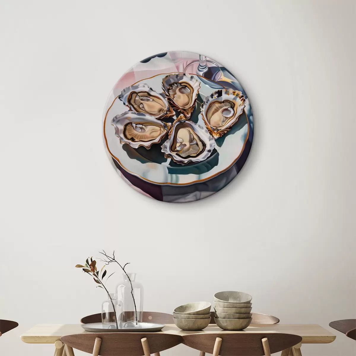 Ronde schilderijen Een bord oesters en een glas wijn Nr r38514