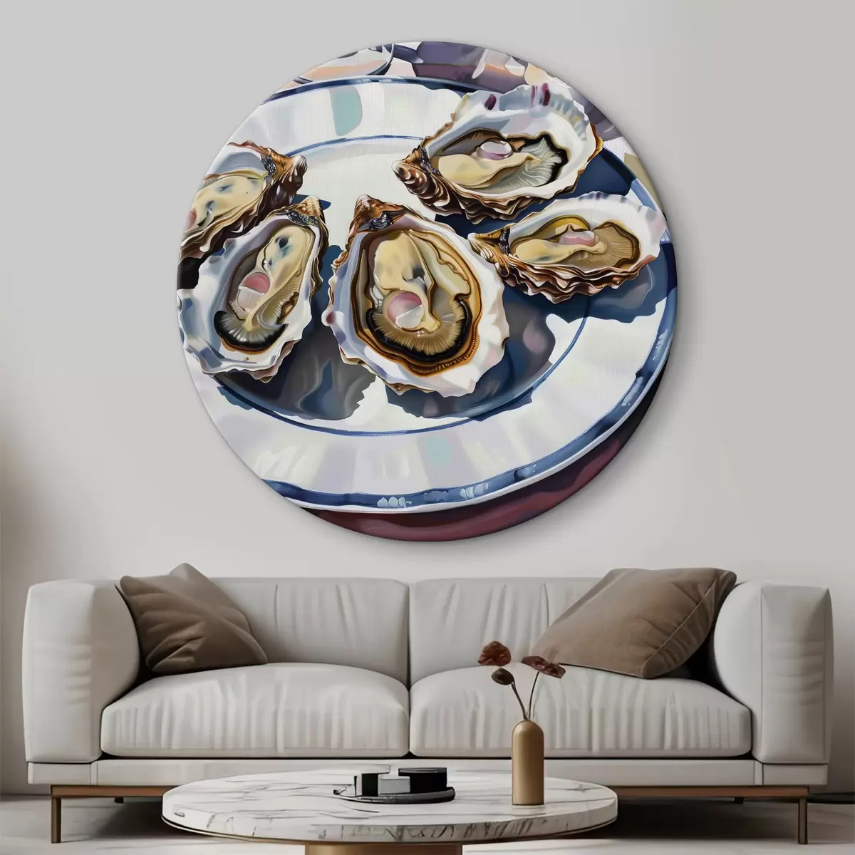 Ronde schilderijen Een bord oesters op tafel Nr r38515
