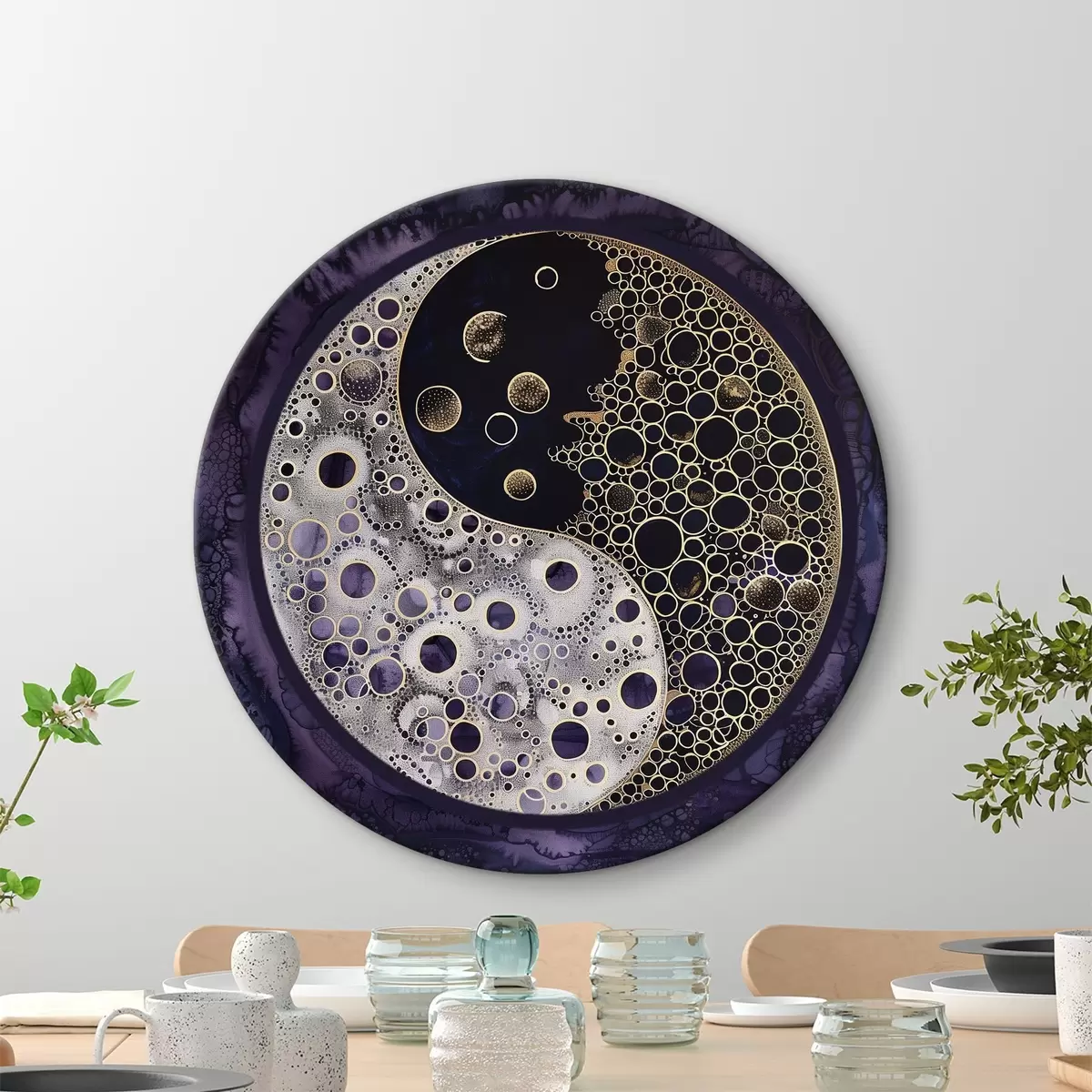 Ronde schilderijen Yin en yang symbool op paarse achtergrond r38535