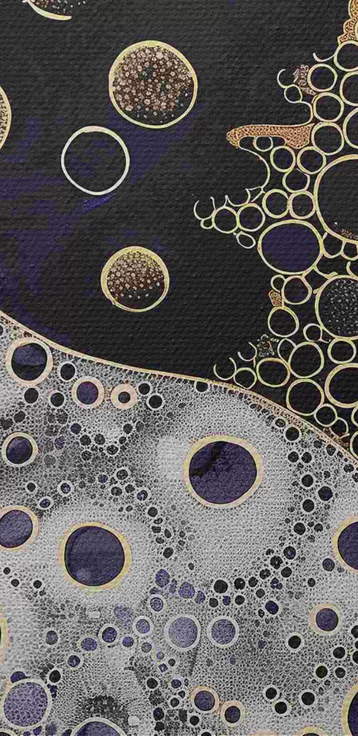 Ronde schilderijen Yin en yang symbool op paarse achtergrond Nr r38535