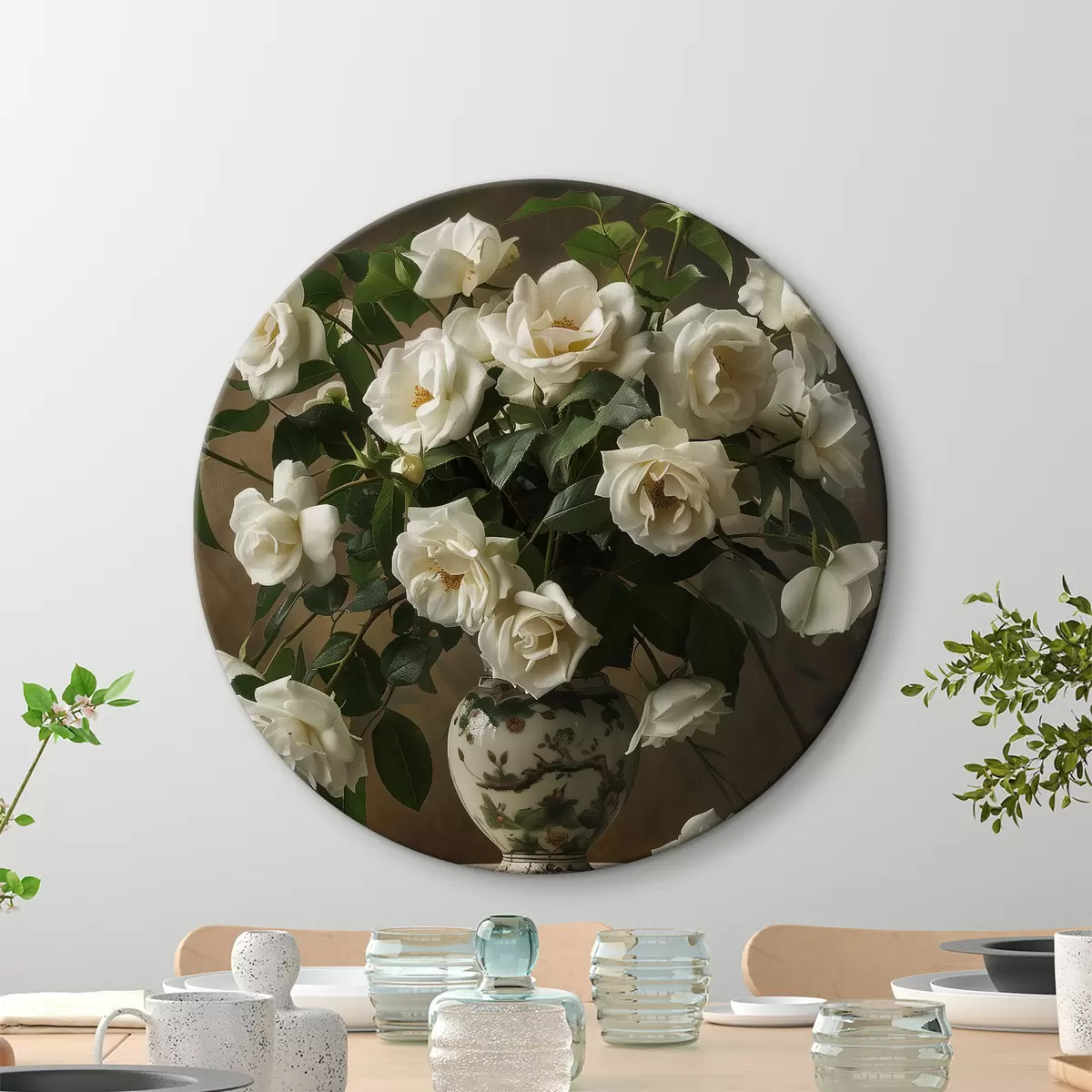 Ronde schilderijen Vaas met witte bloemen Nr r38556