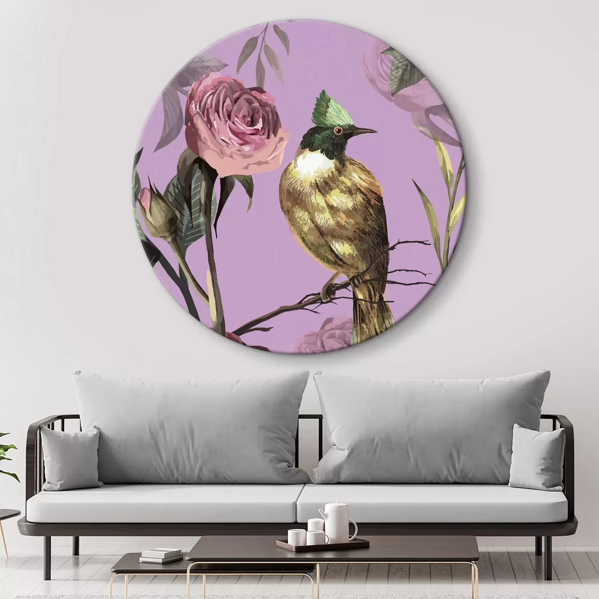Ronde schilderijen Vogel op een tak met bloemen Nr r38564