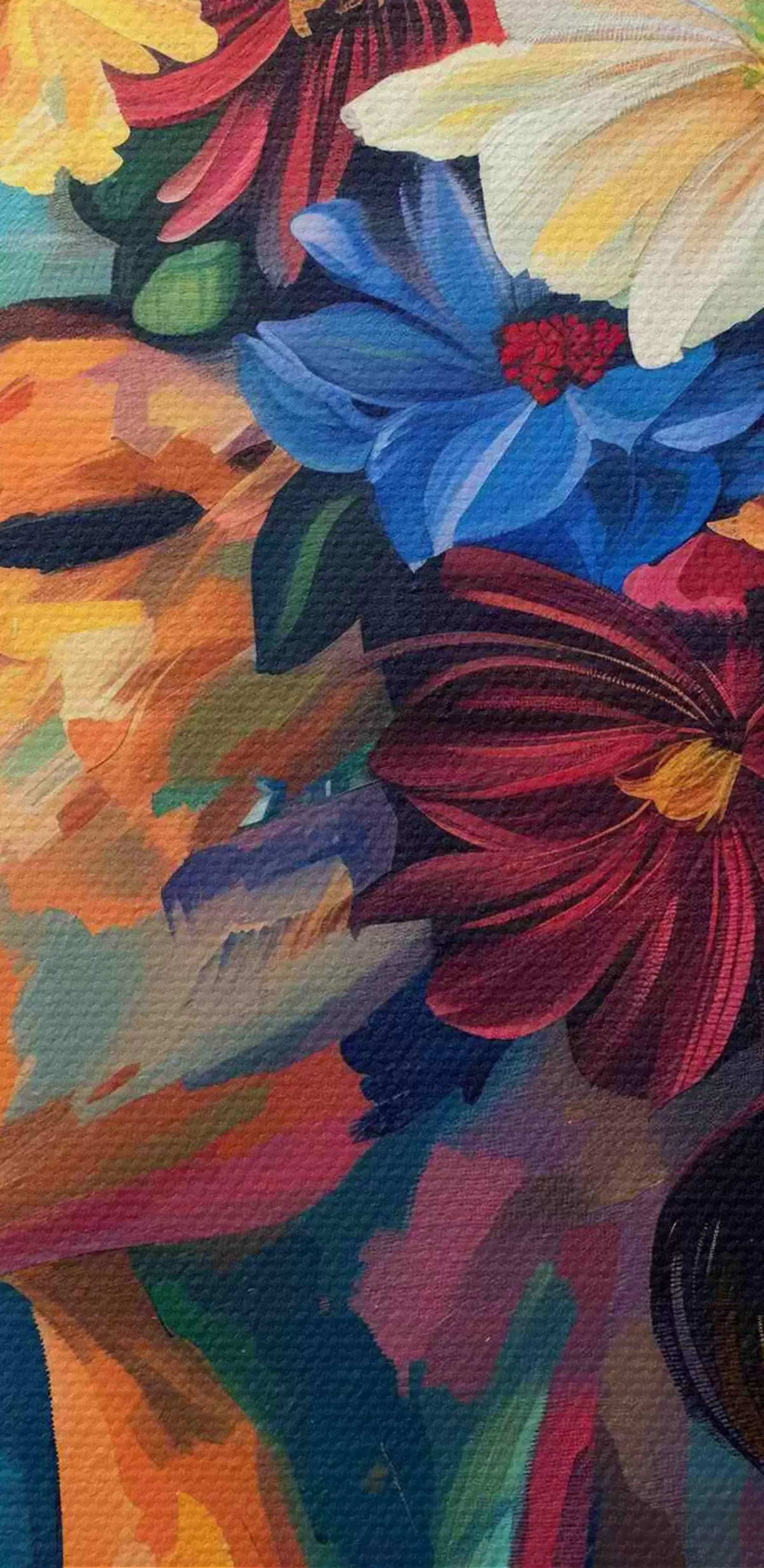 Ronde schilderijen Een schilderij van een vrouw met bloemen in haar haar Nr r38574