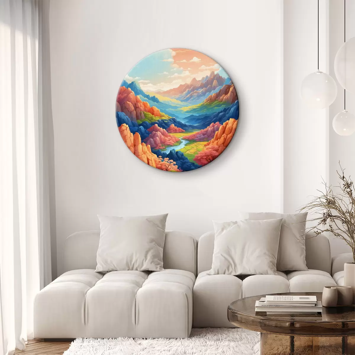 Ronde schilderijen Landschap met bergen en rivier Nr r38577