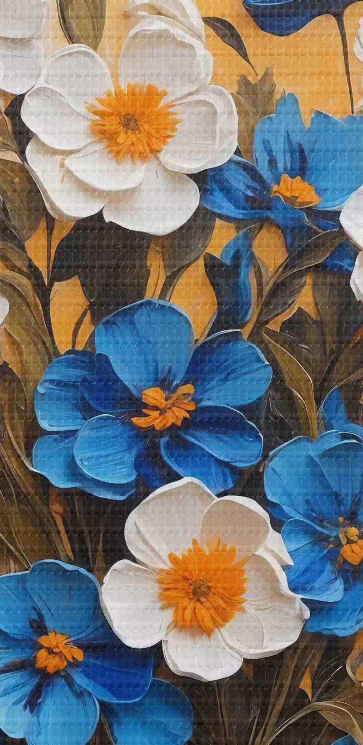 Ronde schilderijen Bloemen in een blauwe vaas op een abstracte achtergrond Nr r38584