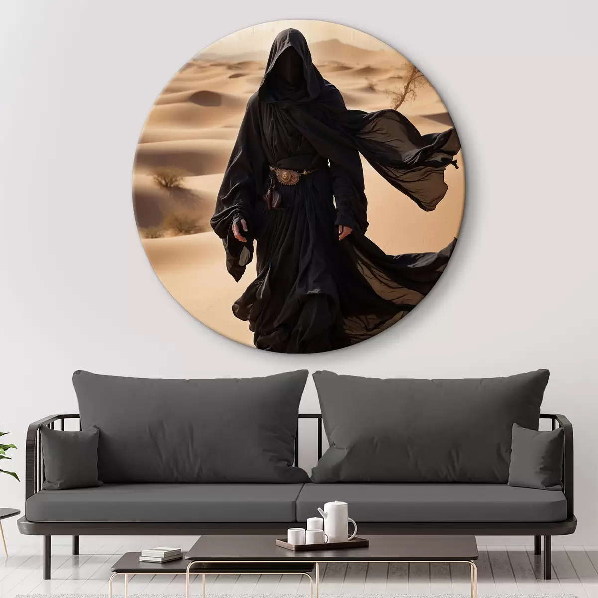 Ronde schilderijen Een mysterieuze zwerver op het woestijnzand r38586