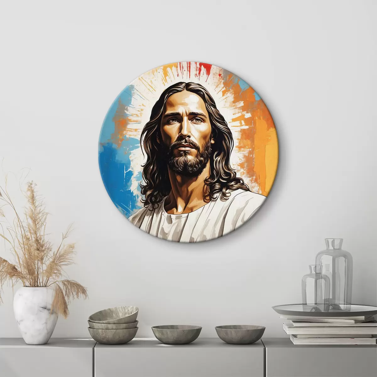 Ronde schilderijen Afbeelding van een man met lang haar r38589