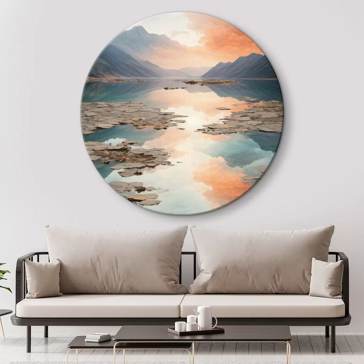 Ronde schilderijen Meer in de bergen r38600