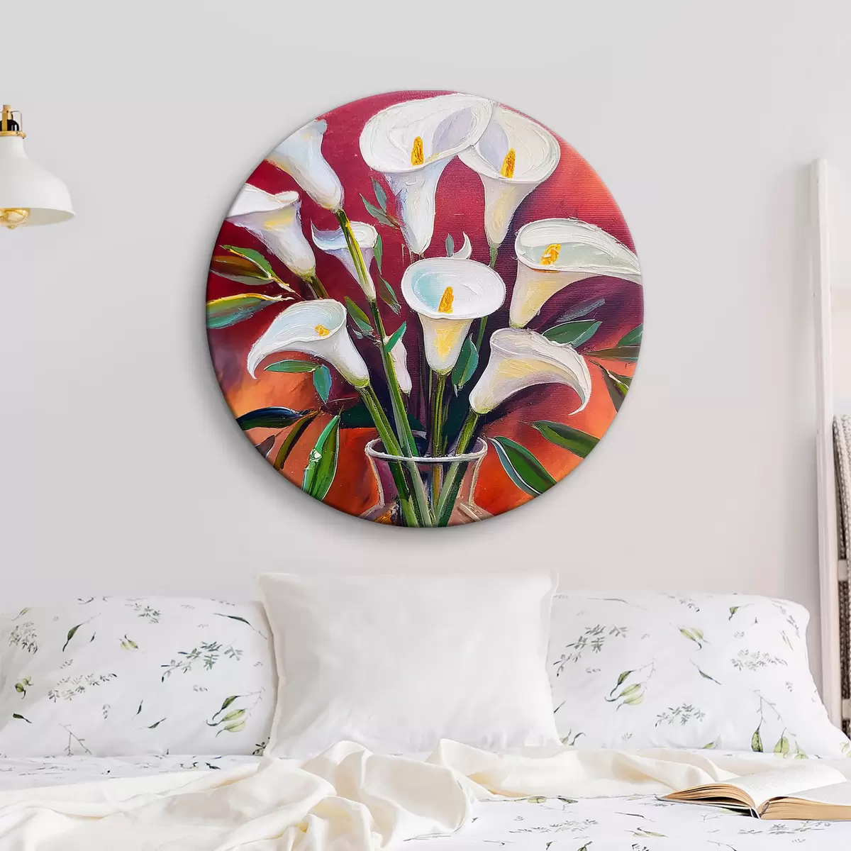 Ronde schilderijen Beeld van witte bloemen in een vaas Nr r38605
