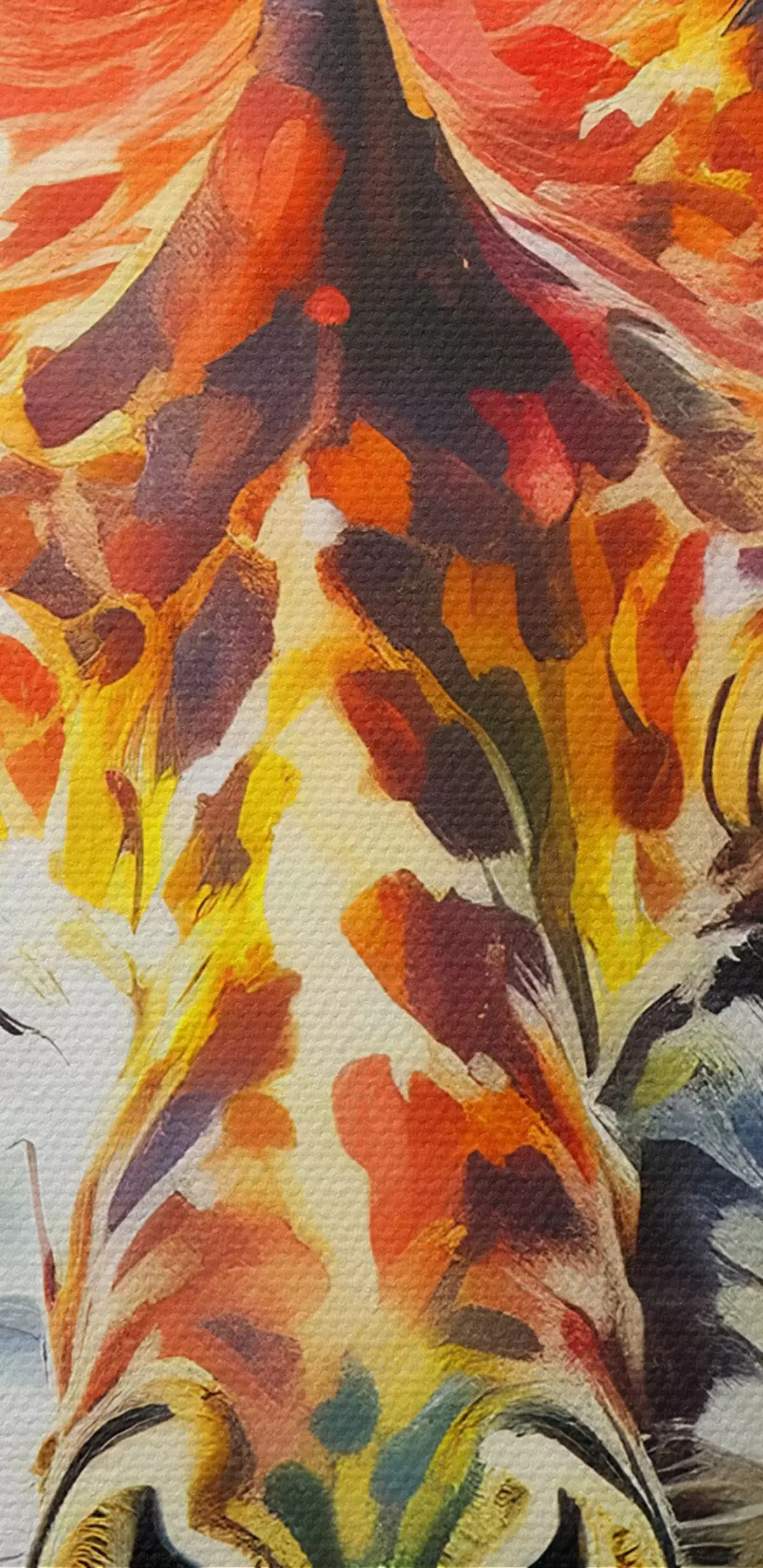Het schilderij kan direct na ontvangst worden opgehangen. Het schilderij wordt opgespannen op een 2 cm breed houten spieraam.