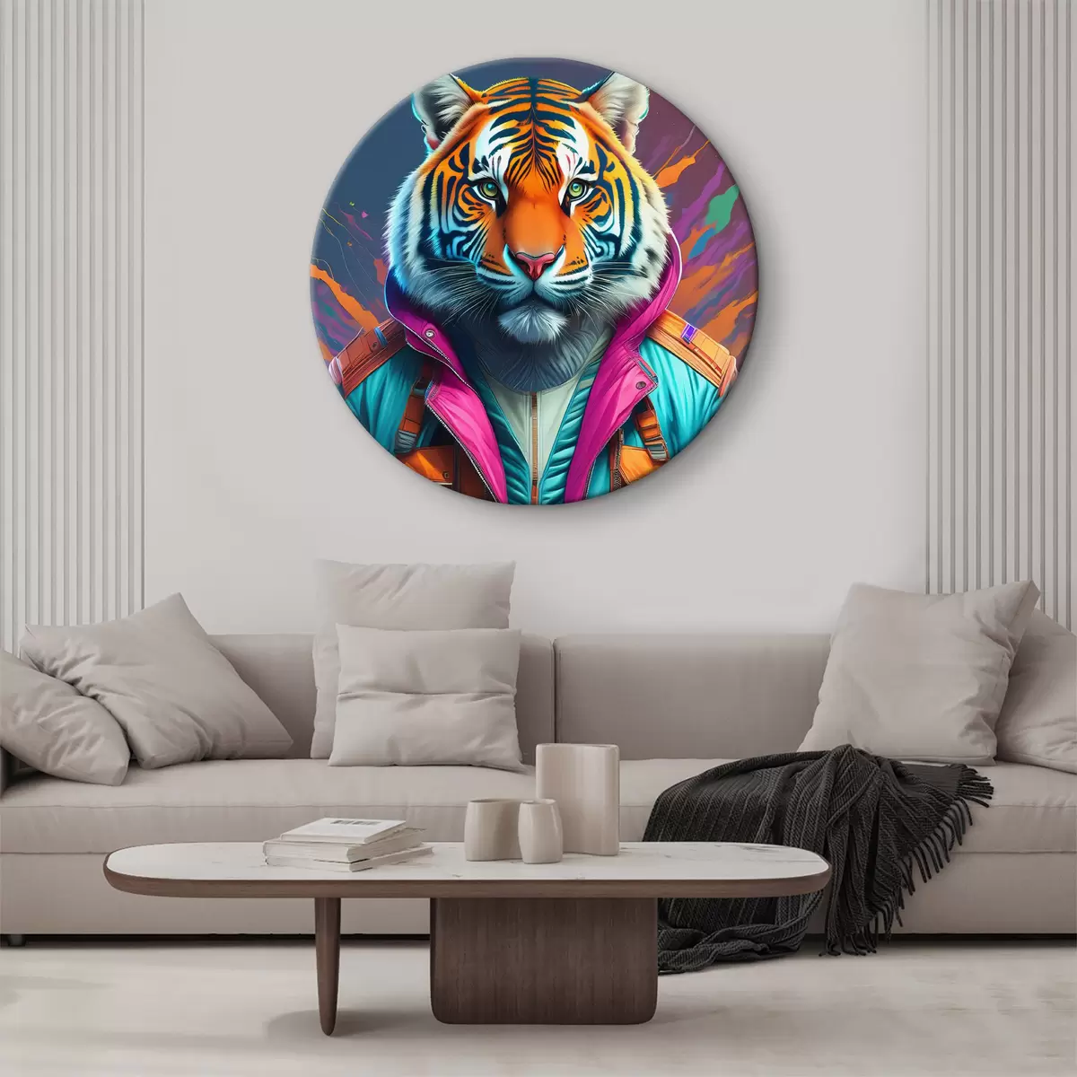 Ronde schilderijen Tijger in een jasje Nr r38610