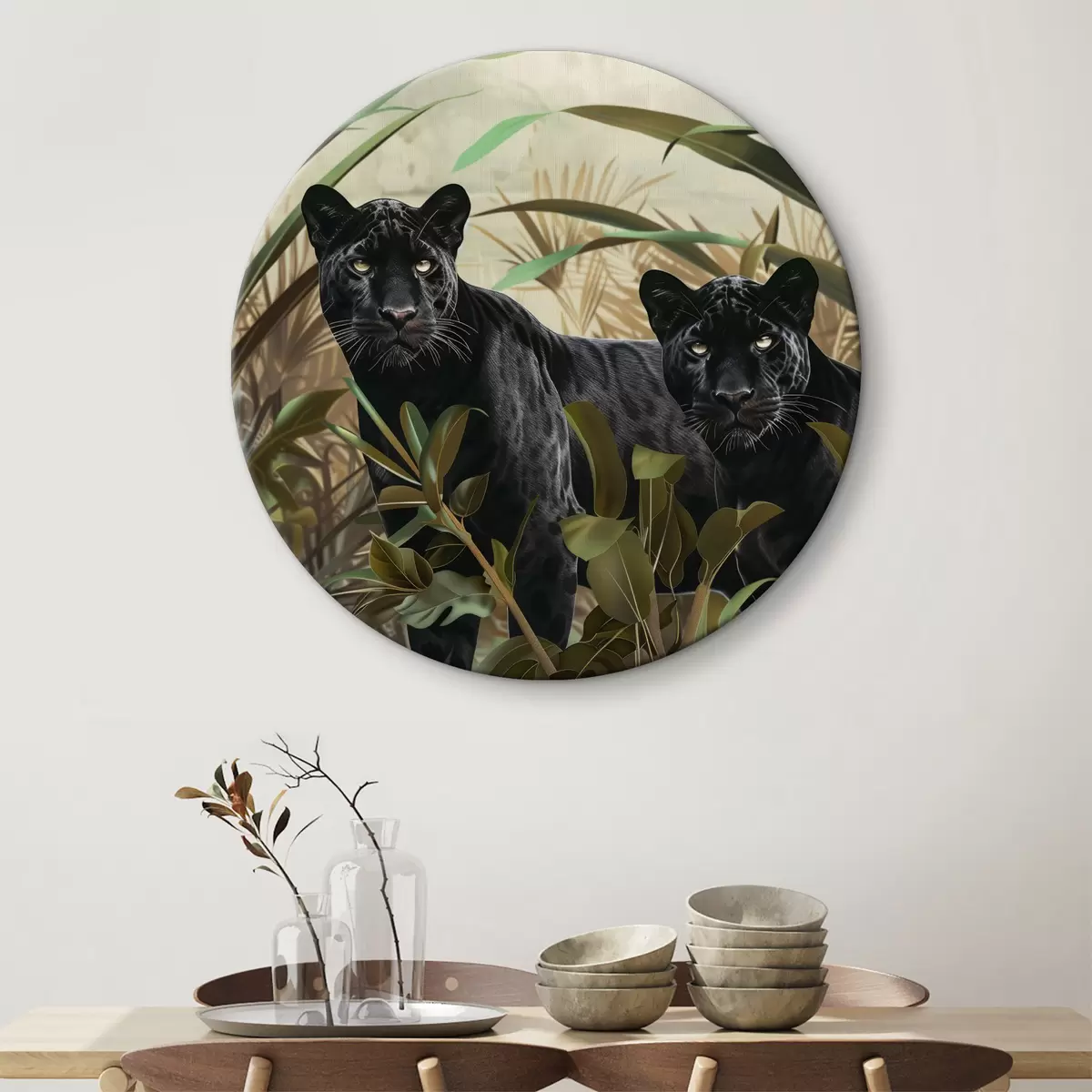 Ronde schilderijen Twee zwarte tijgers in de jungle Nr r38618