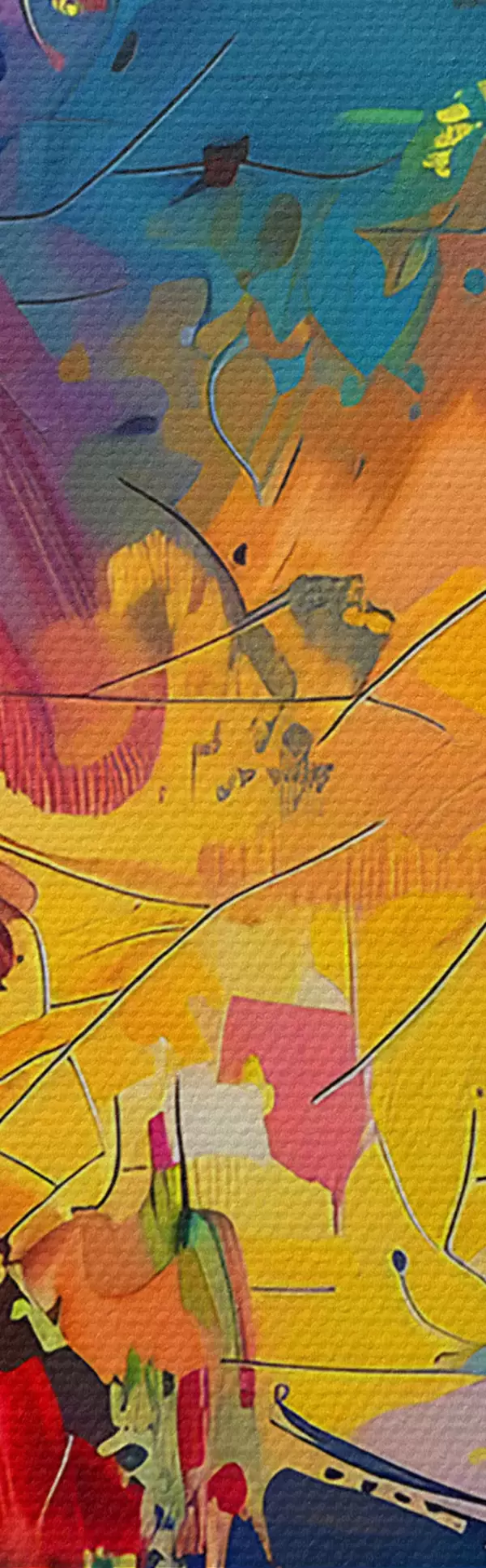 Het schilderij kan direct na ontvangst worden opgehangen. Het schilderij wordt opgespannen op een 2 cm breed houten spieraam.