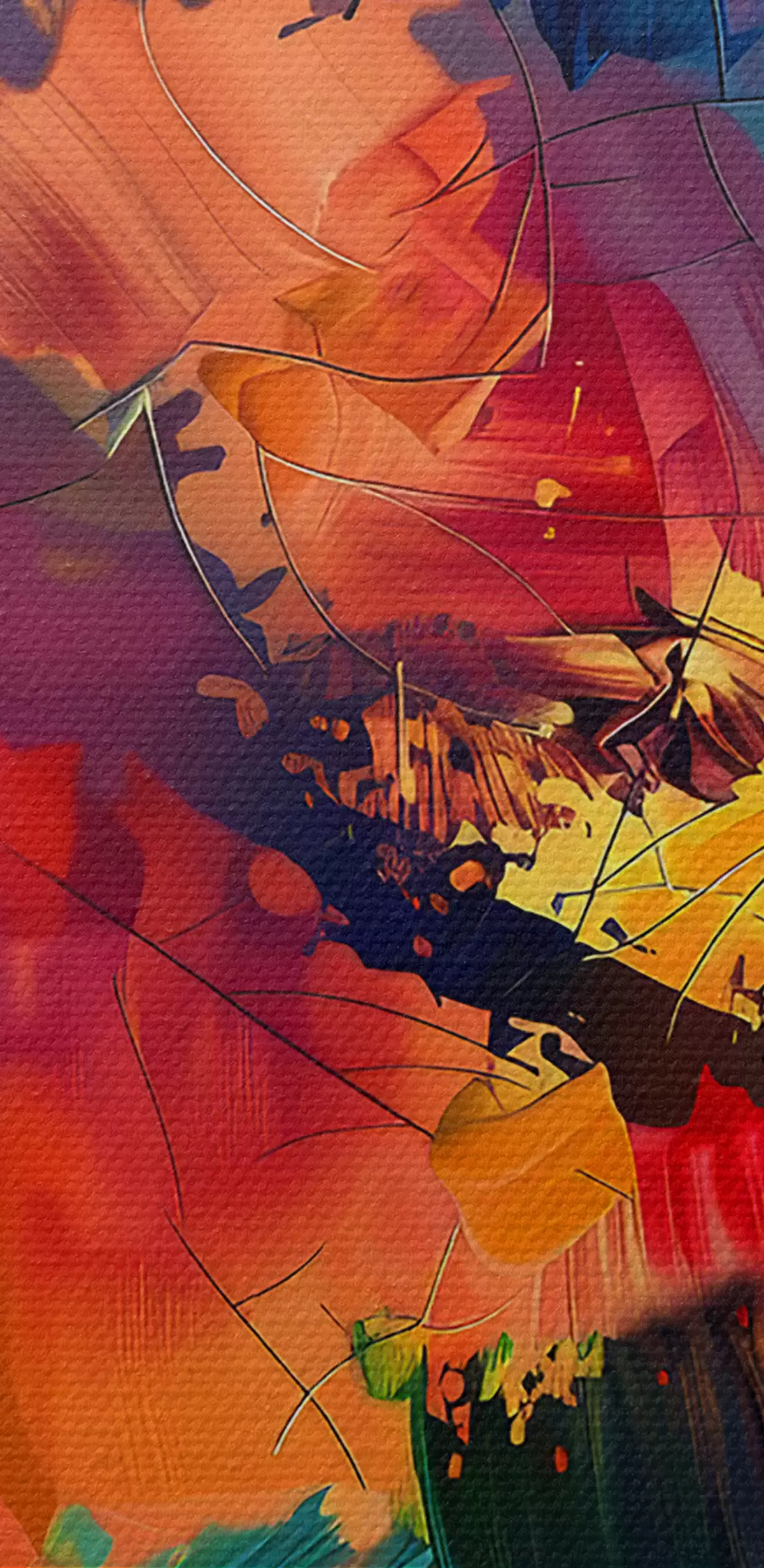 Het schilderij kan direct na ontvangst worden opgehangen. Het schilderij wordt opgespannen op een 2 cm breed houten spieraam.