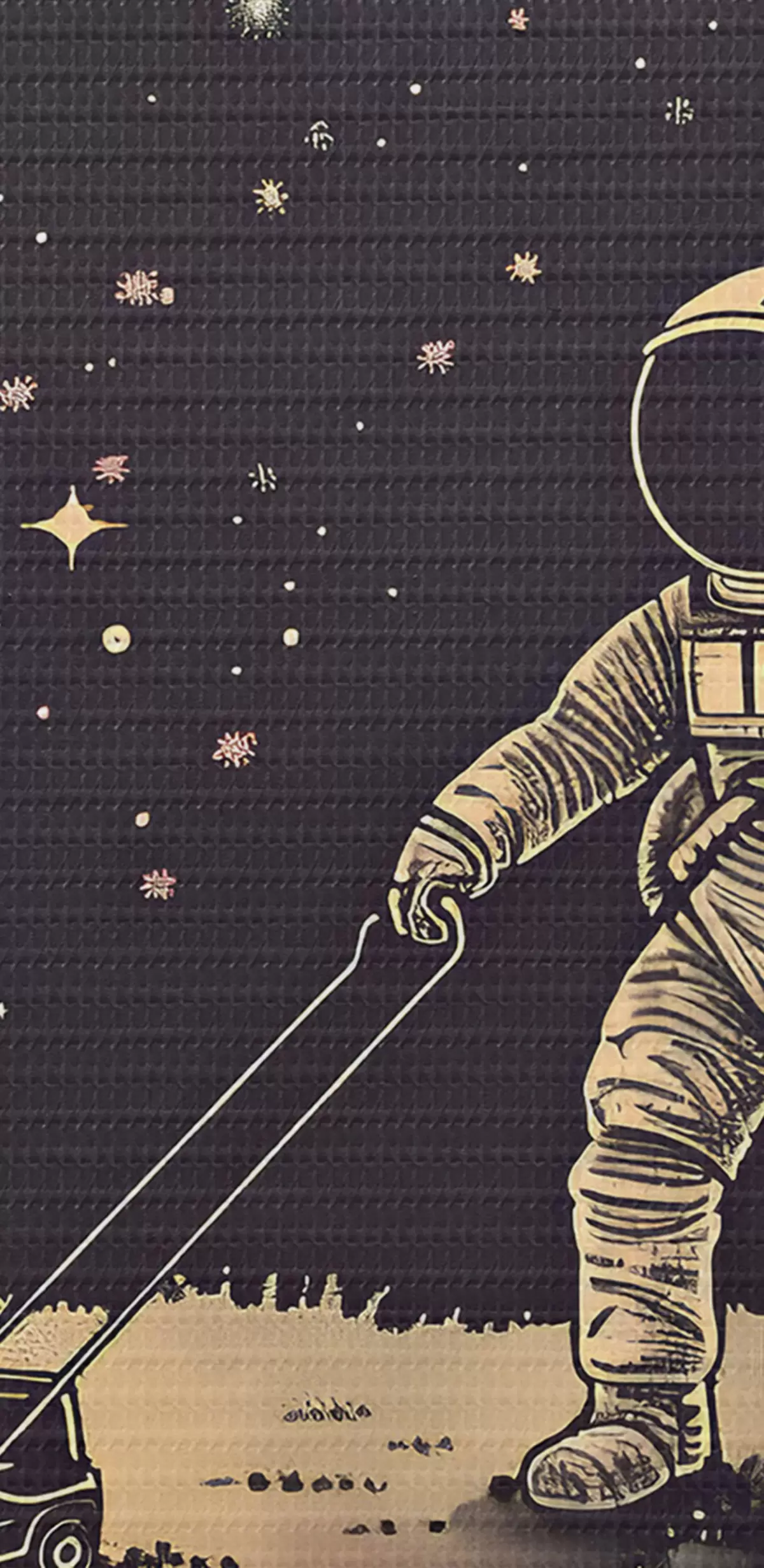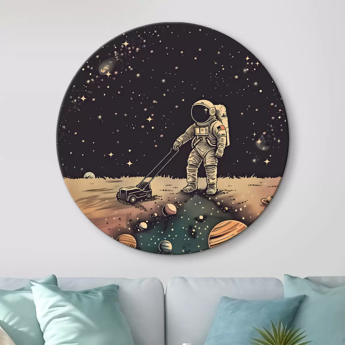 Ronde schilderijen Astronaut met grasmaaier in de ruimte Nr r38637