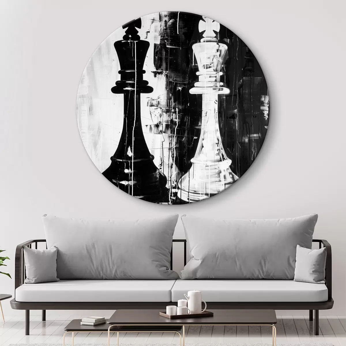 Ronde schilderijen Schaakstuk in zwart-witte kleur Nr r38642