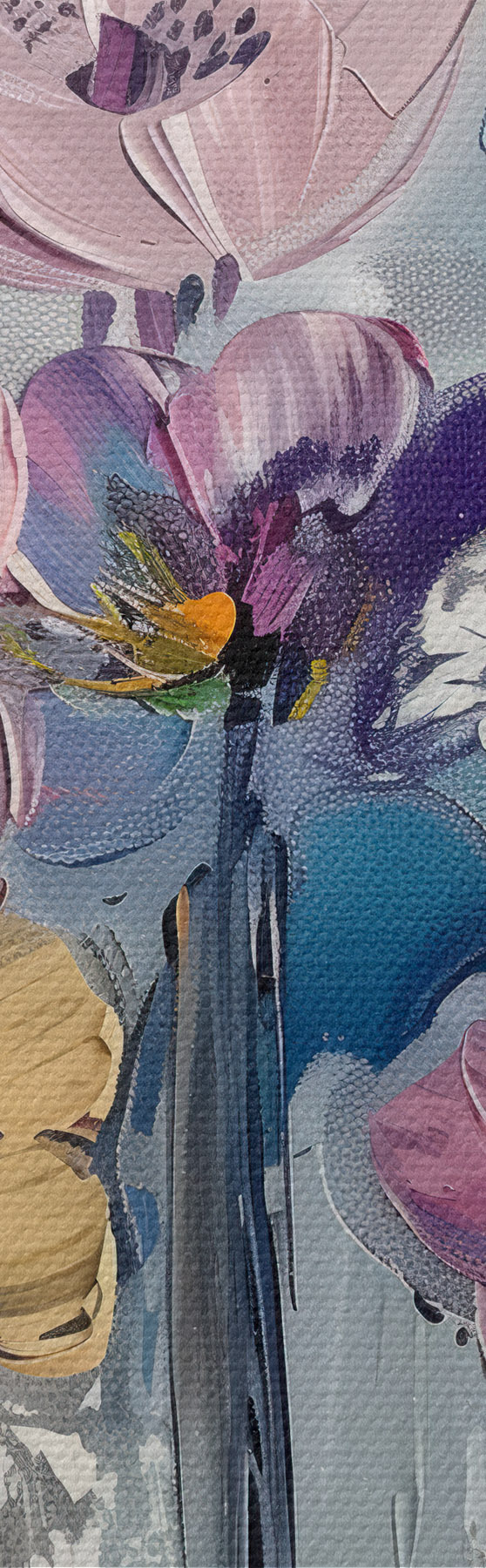 Er zijn drie soorten materiaal te bestellen: Economic Canvas - een dicht en duurzaam materiaal voor digitaal printen, identiek aan schildersdoek, waterdicht oppervlak, realistische weergave van details, materiaal met gemiddelde korrel. Premium Canvas - de textuur lijkt op die van schildersdoek (verweven kleine draden). Zachte, gedetailleerde reproductie van de afbeelding op een mat oppervlak. Eco-Premium - hoogwaardige 100% katoenen stof. Dankzij de natuurlijke katoenvezels is het materiaal duurzaam en slijtvast. Uitstekende kleurweergave en detail.