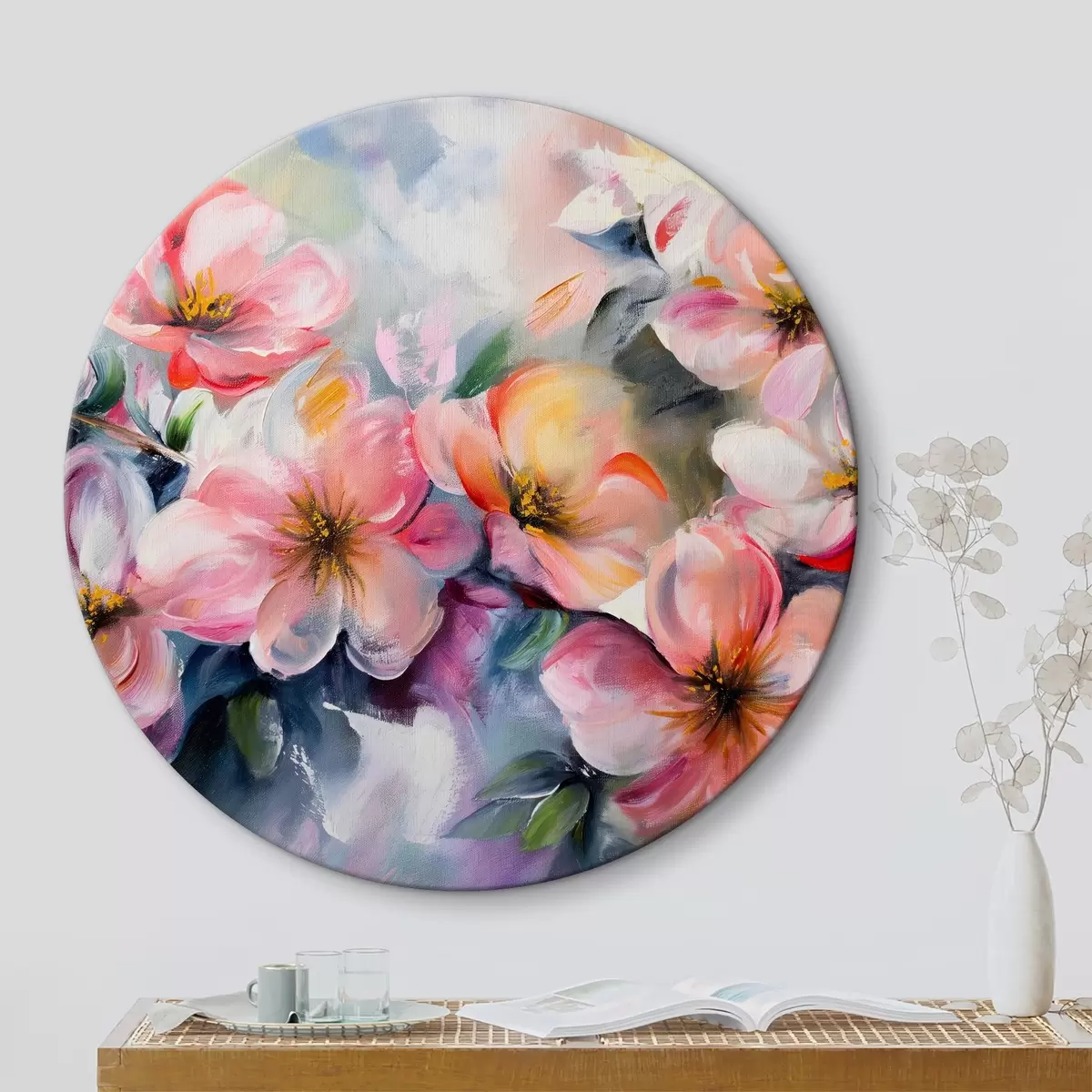 Ronde schilderijen Een afbeelding van roze bloemen r38644