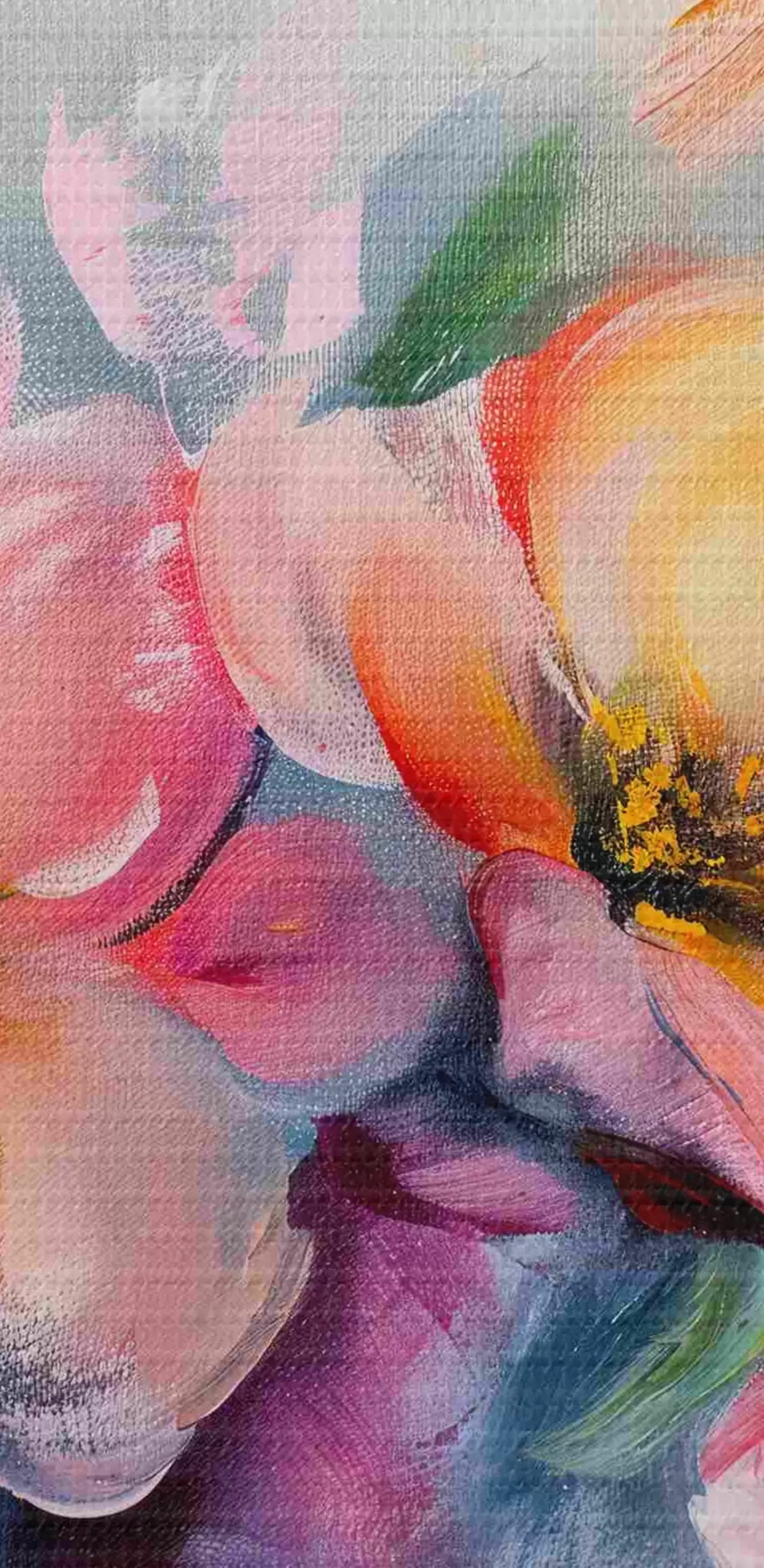 Het schilderij kan direct na ontvangst worden opgehangen. Het schilderij wordt opgespannen op een 2 cm breed houten spieraam.