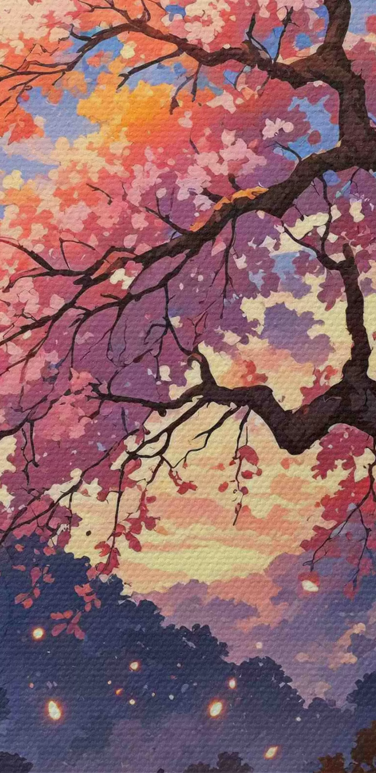 Ronde schilderijen Een boom met roze bloemen doorkruist door een rivier Nr r38645