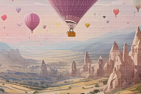 Ronde schilderijen ballonnen in de bergen boven de bloemen r38656