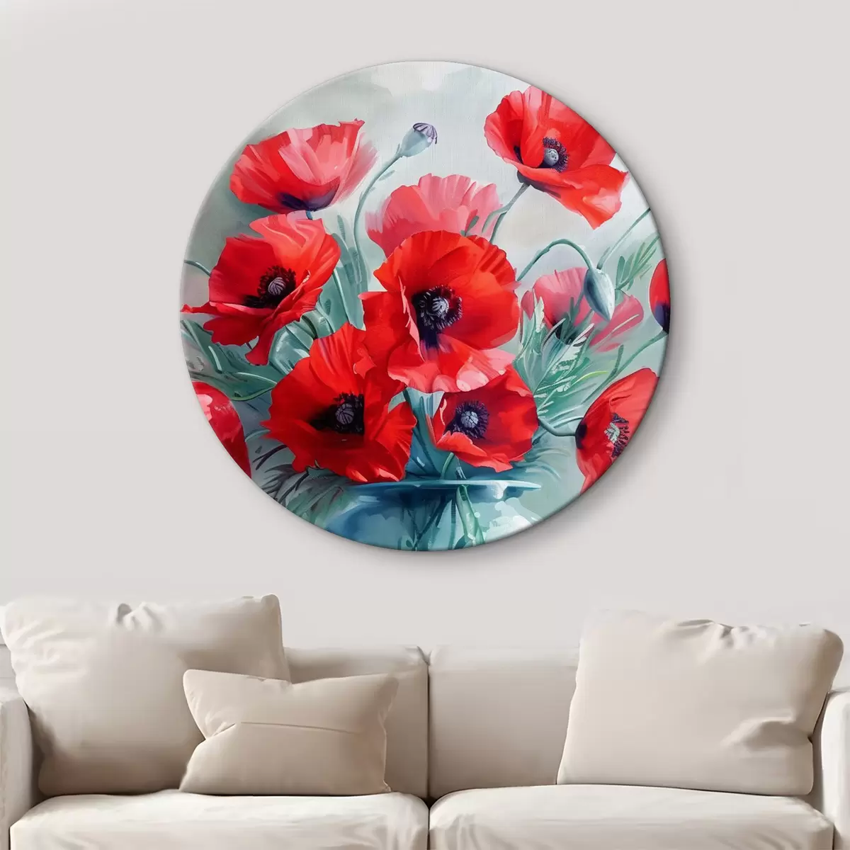 Ronde schilderijen Aquarel klaprozen in een vaas op tafel Nr r38695