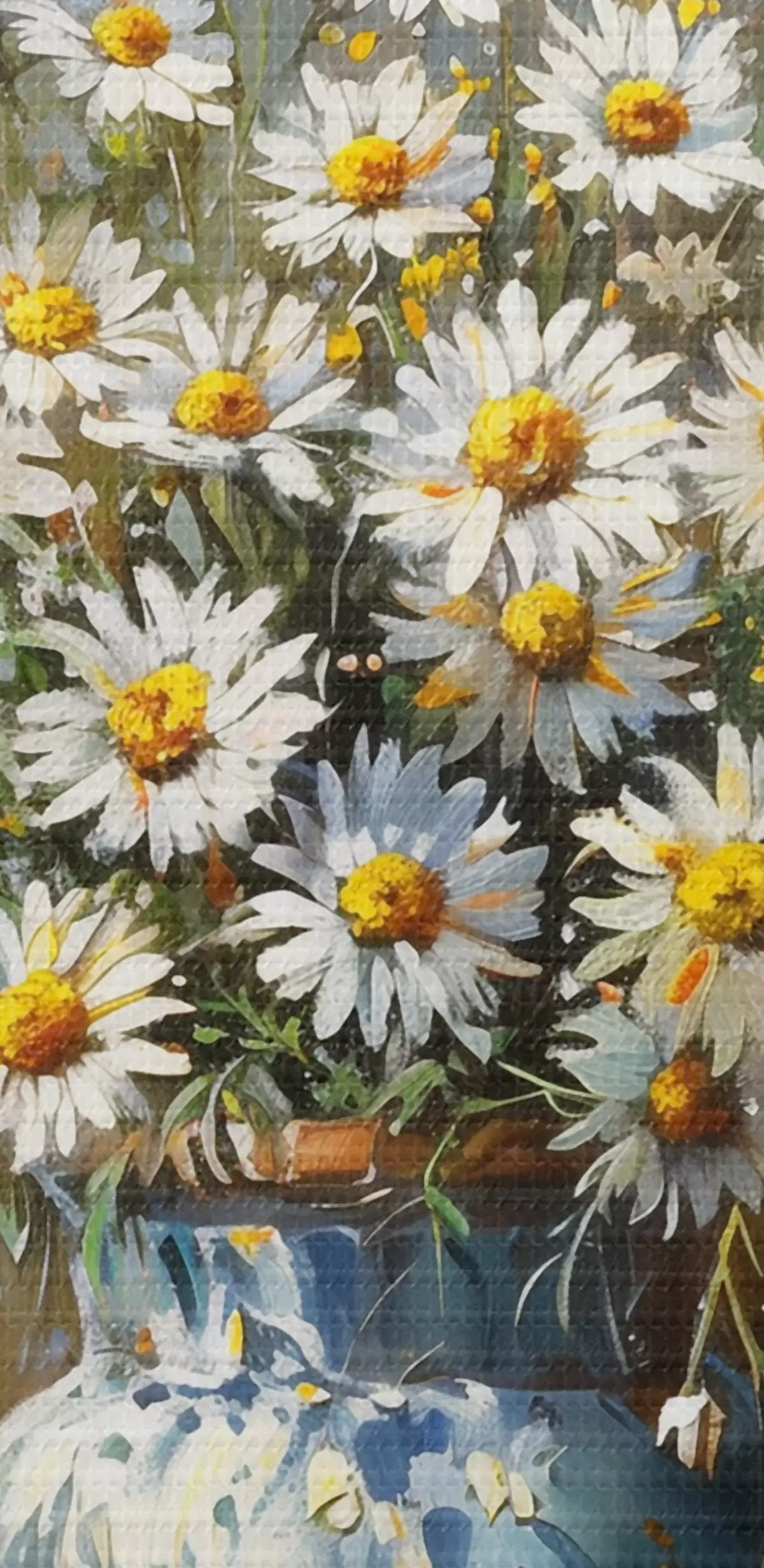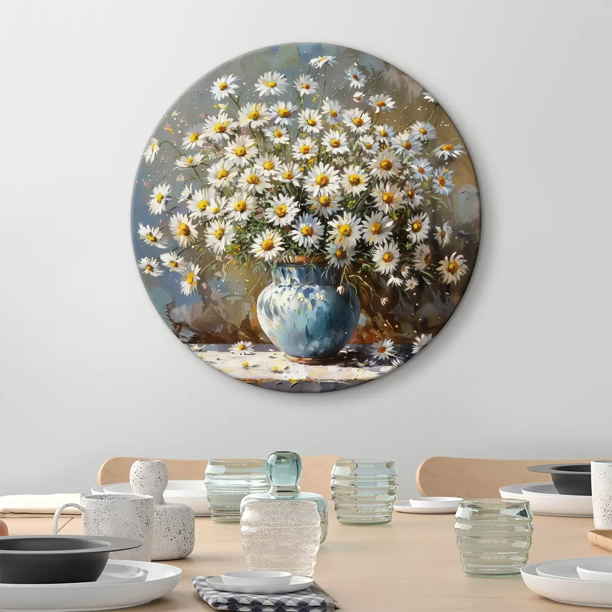 Ronde schilderijen Vaas met madeliefjes op tafel Nr r38707